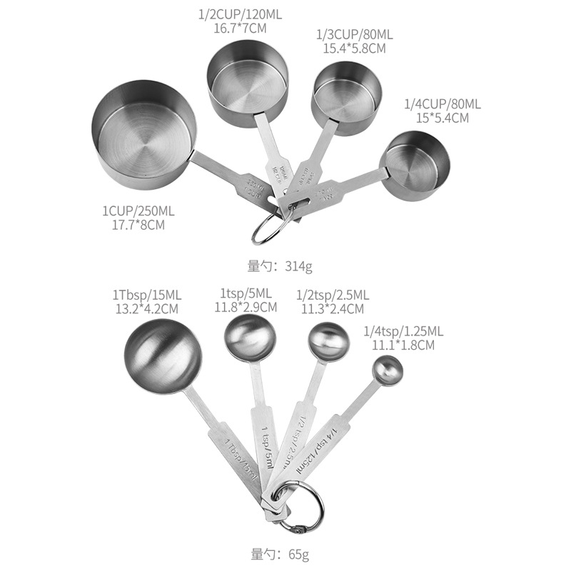 • 눈금이 있는 계량컵과 계량스푼 8종 세트