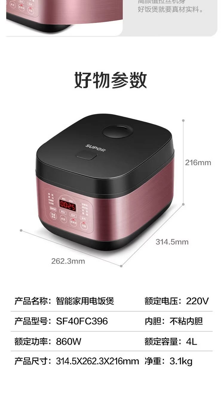 苏泊尔智能电饭煲4L多功能2-8人电饭锅礼品专供包销SF40FC396