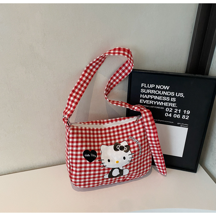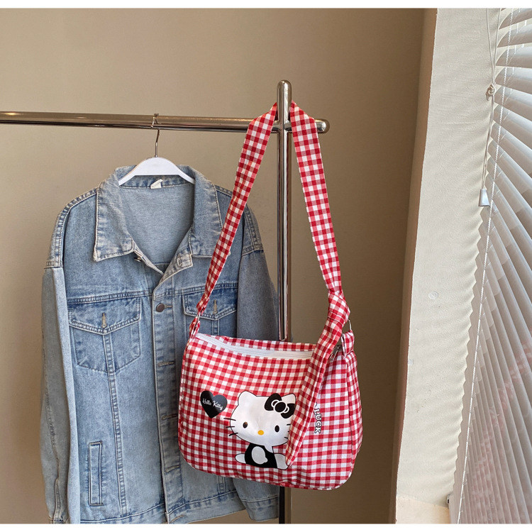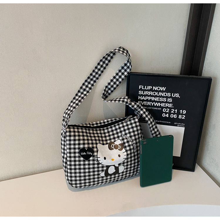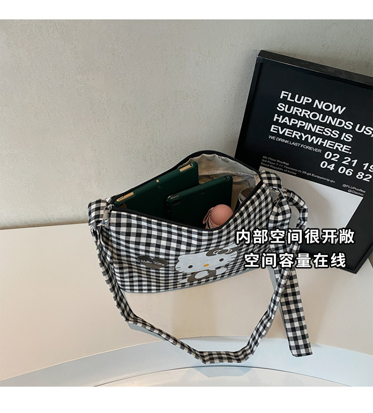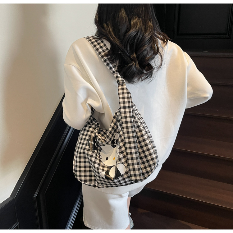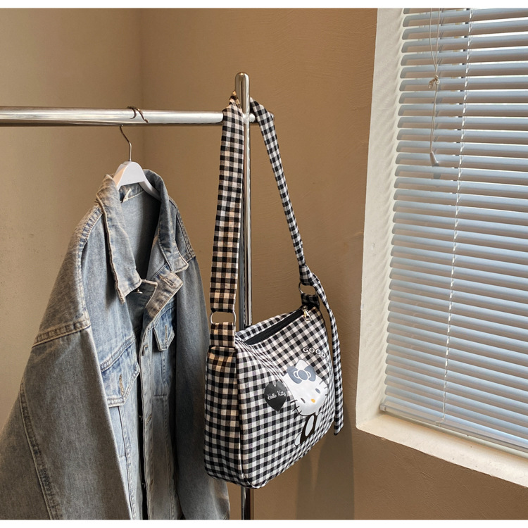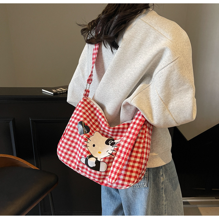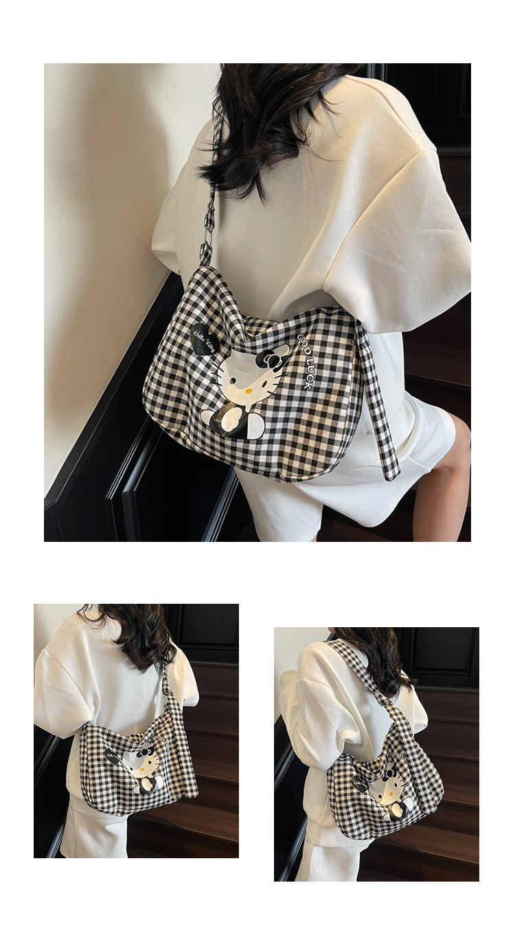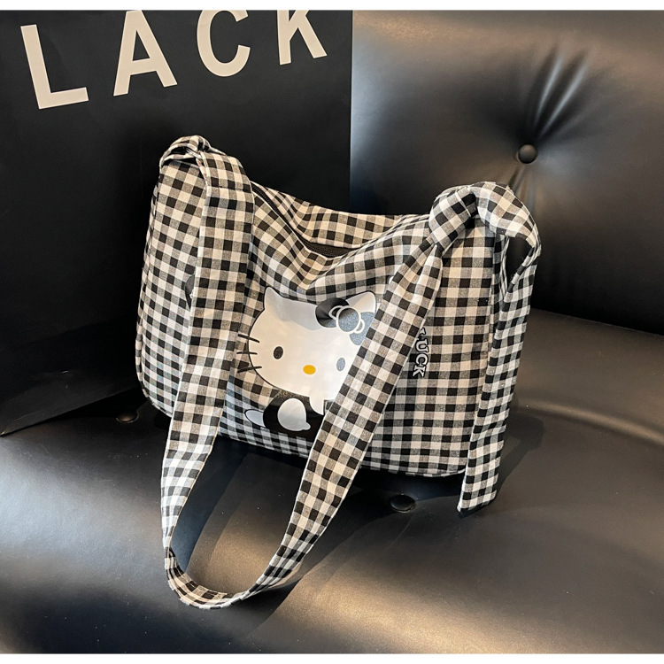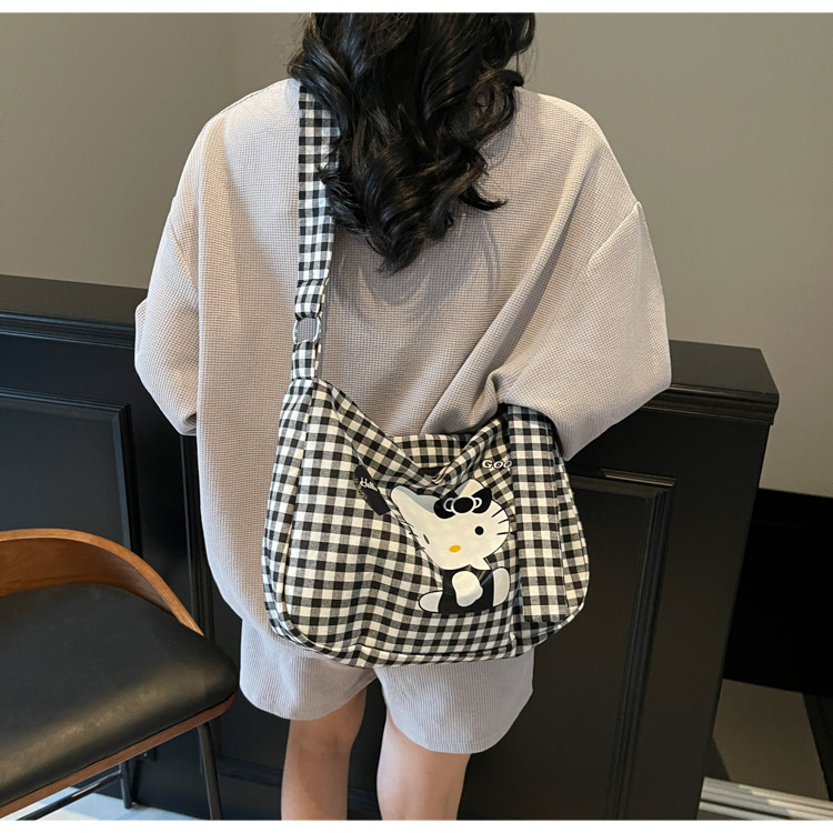 여성용 귀여운 만화 격자 무늬 캔버스 가방, 대용량 학생 클래스 통근 토트 백, 다용도 어깨 휴대용 가방