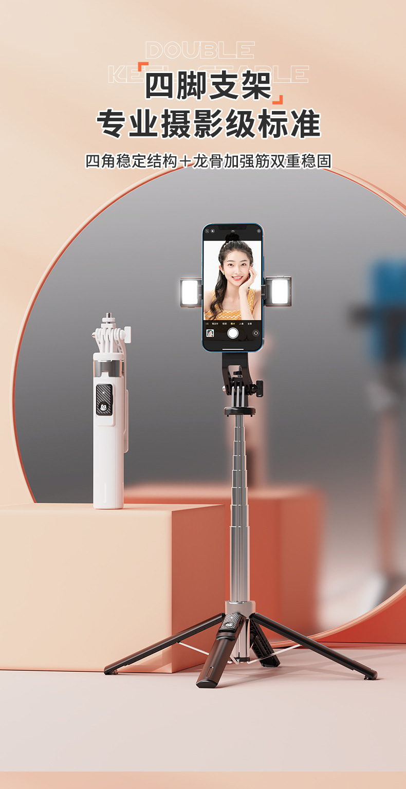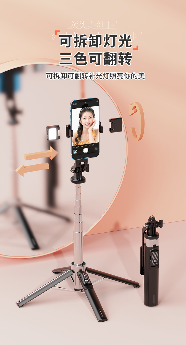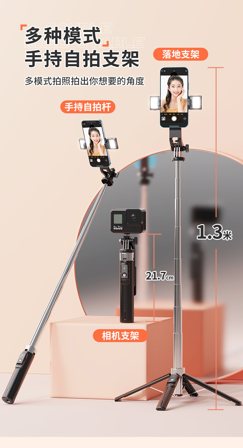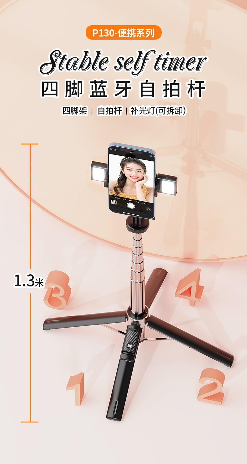 P130 블루투스 셀카 스틱 네 다리 용골 단단히 1.3 m 라이브 채우기 빛 P135 카메라 브래킷 지원