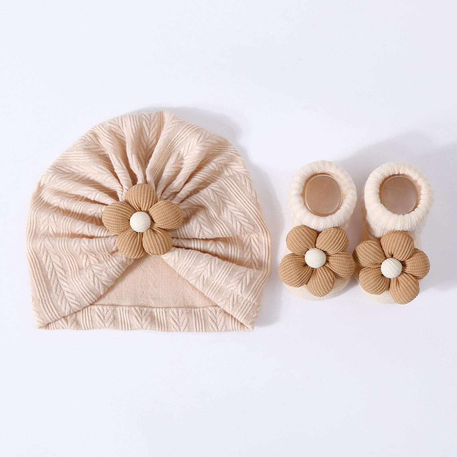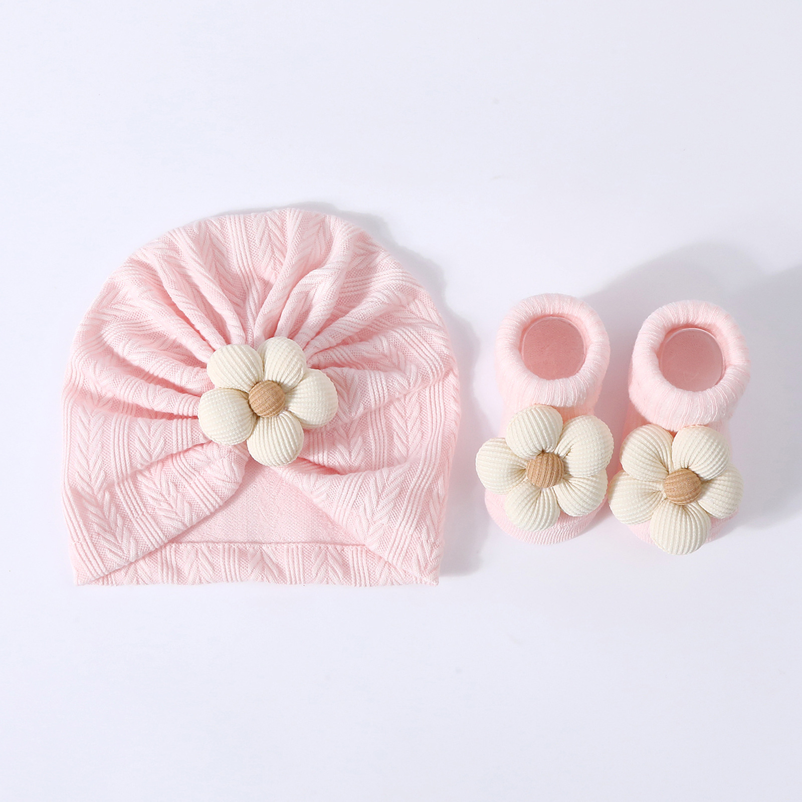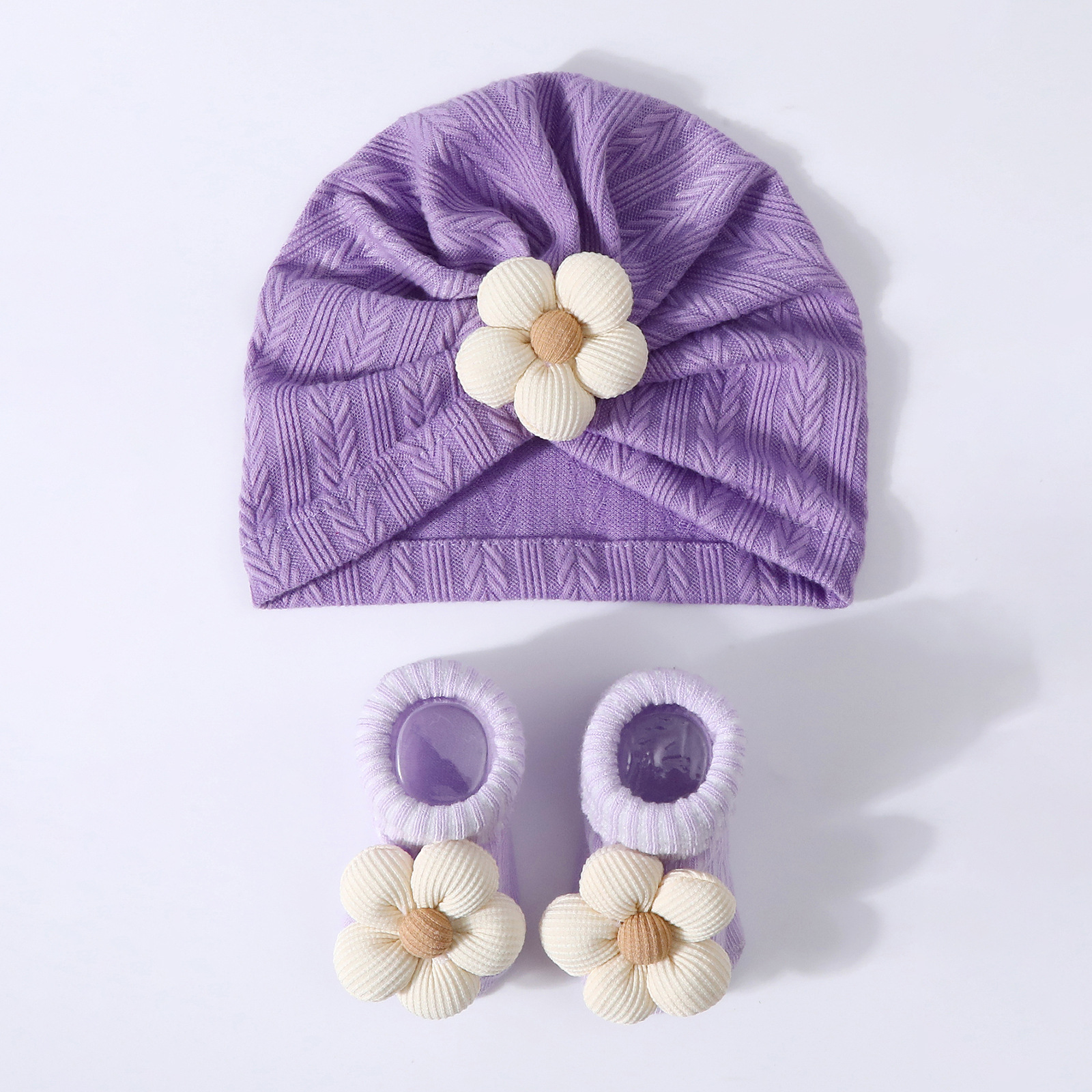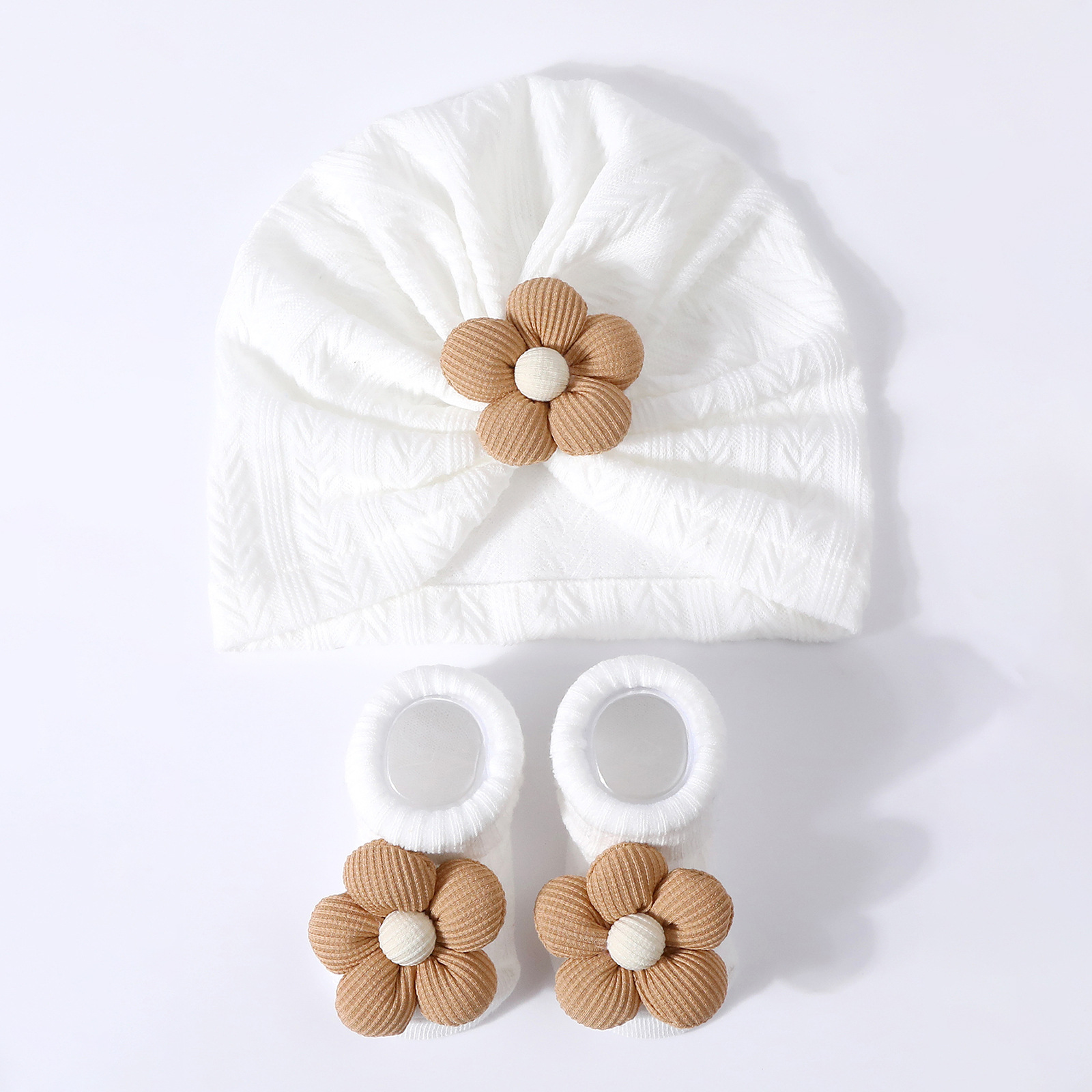 2025 아기 니트 면화 대형 수제 꽃 니트 양말 세트 아기 모자 머리 수건 모자 신생아 제품