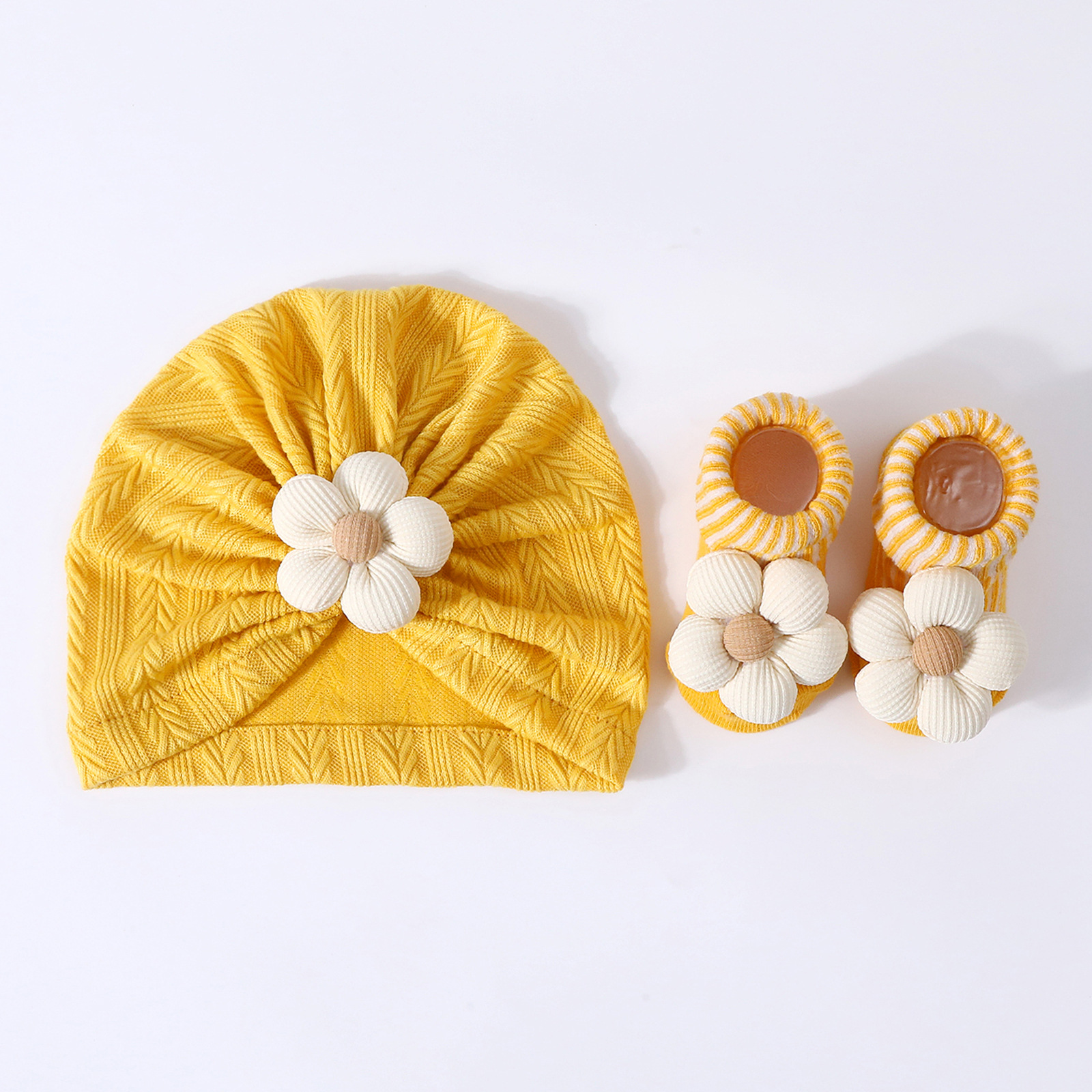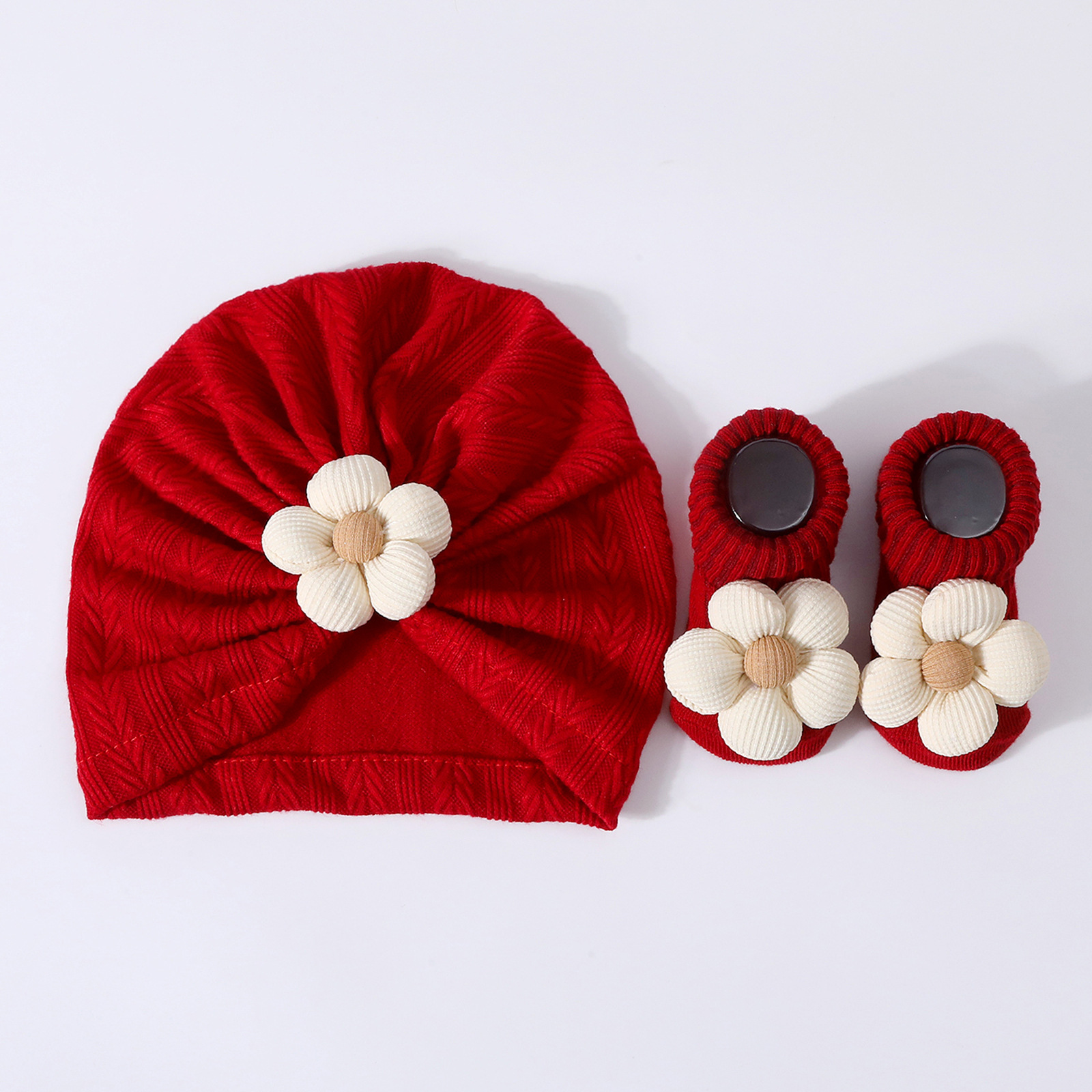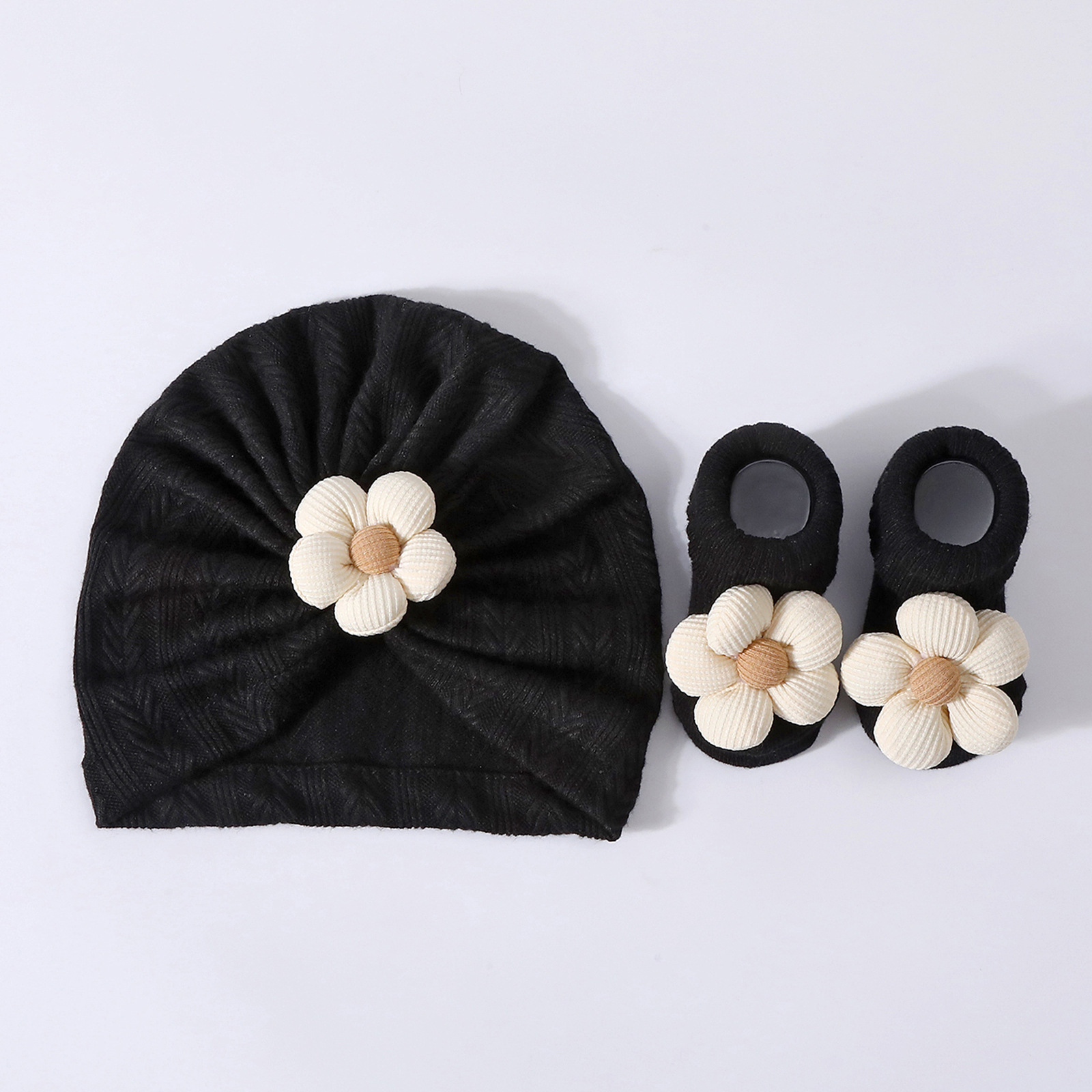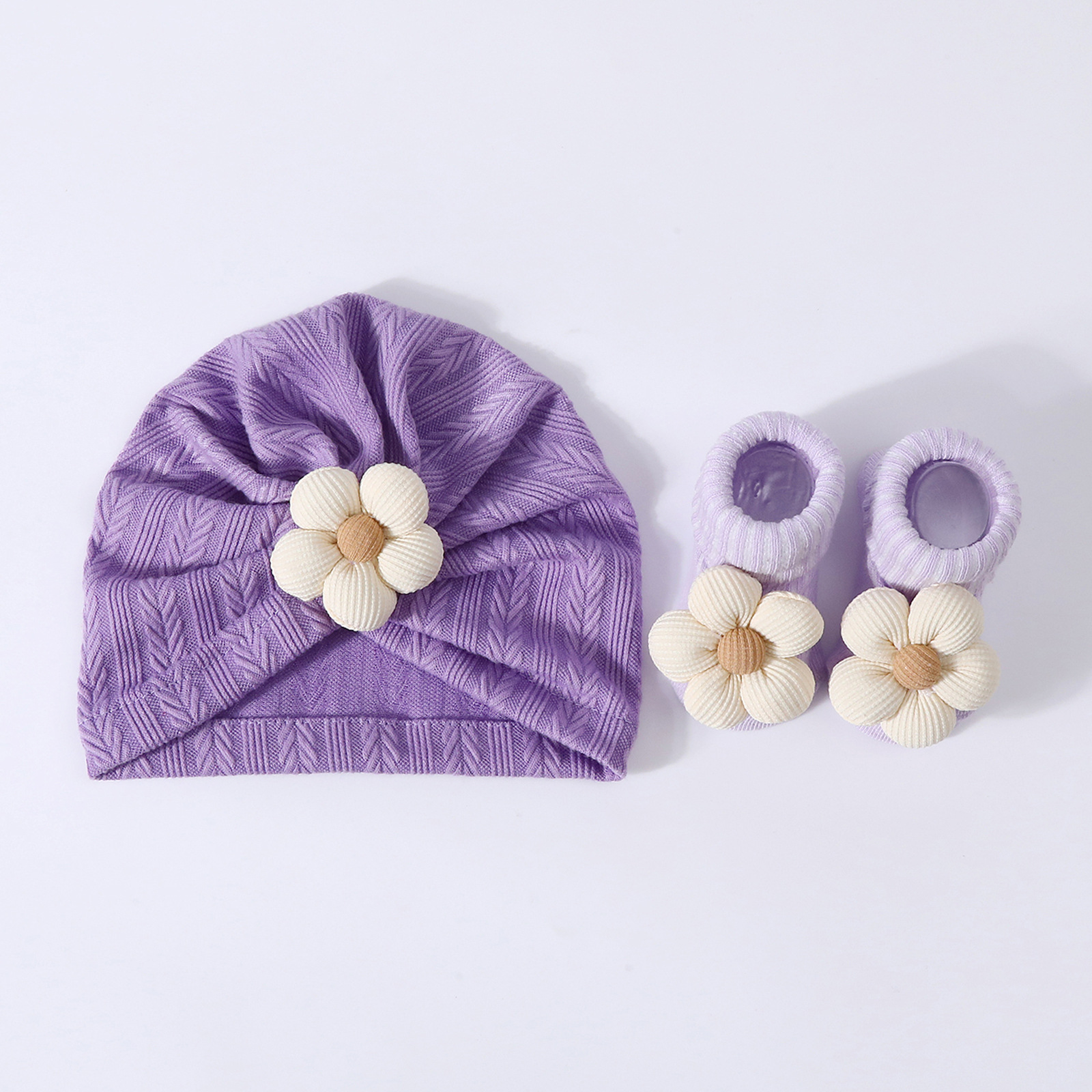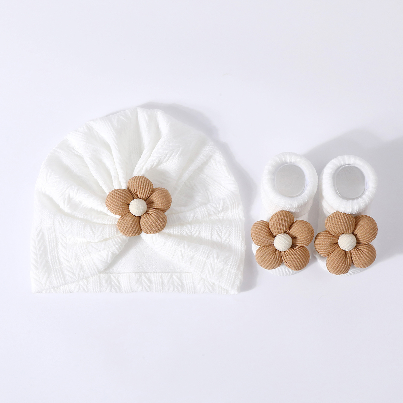 2025 아기 니트 면화 대형 수제 꽃 니트 양말 세트 아기 모자 머리 수건 모자 신생아 제품