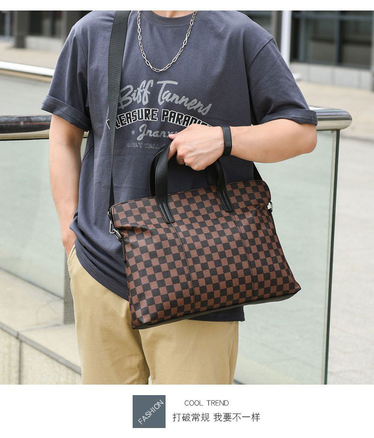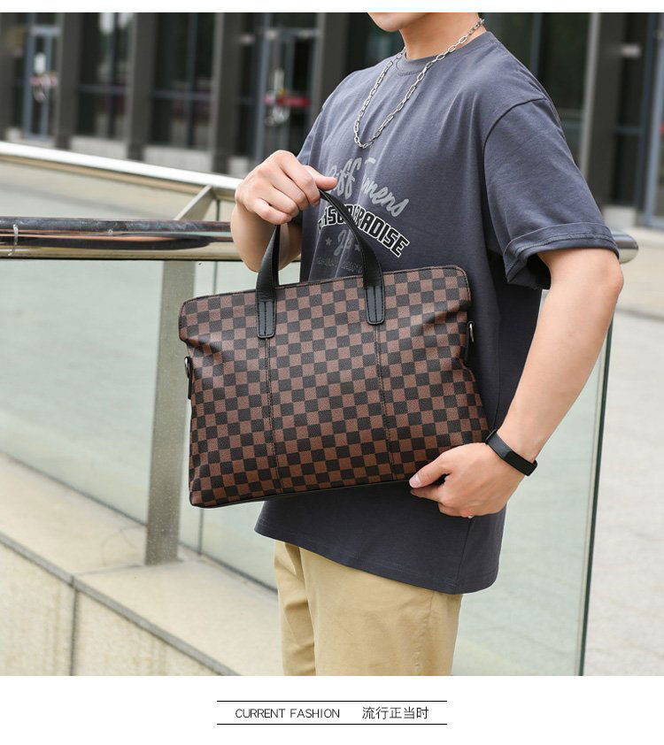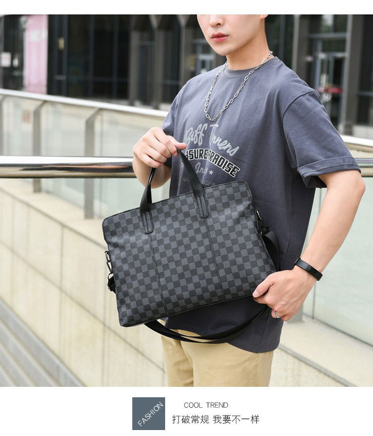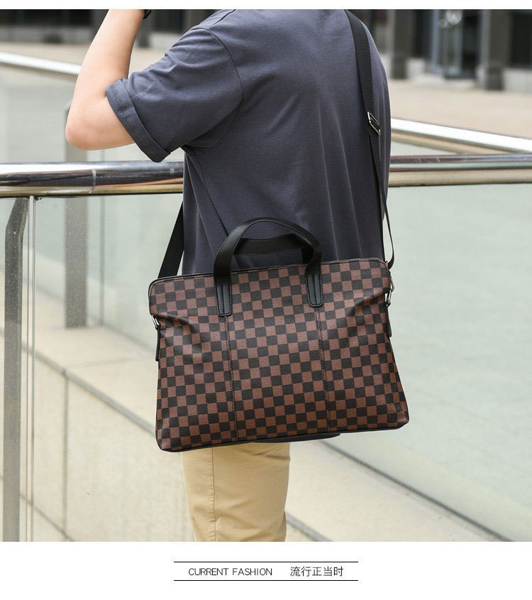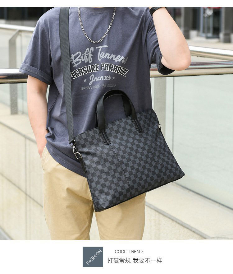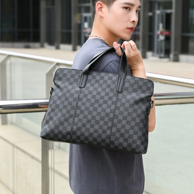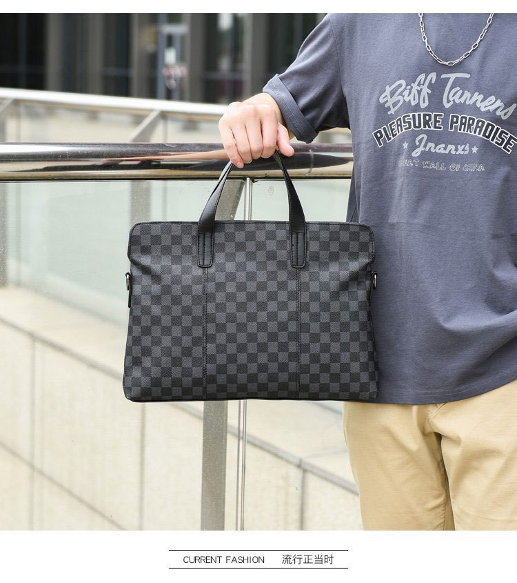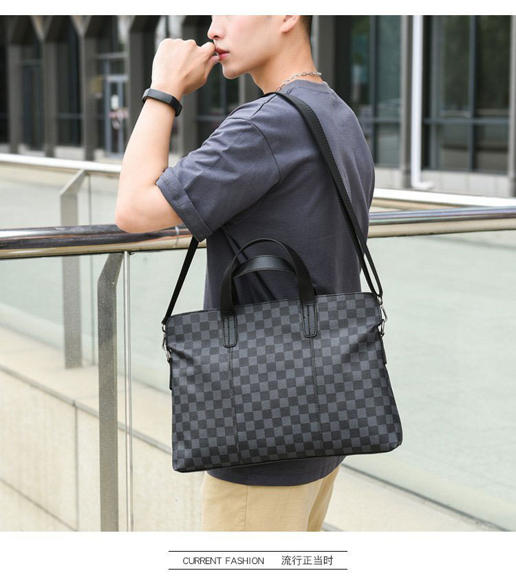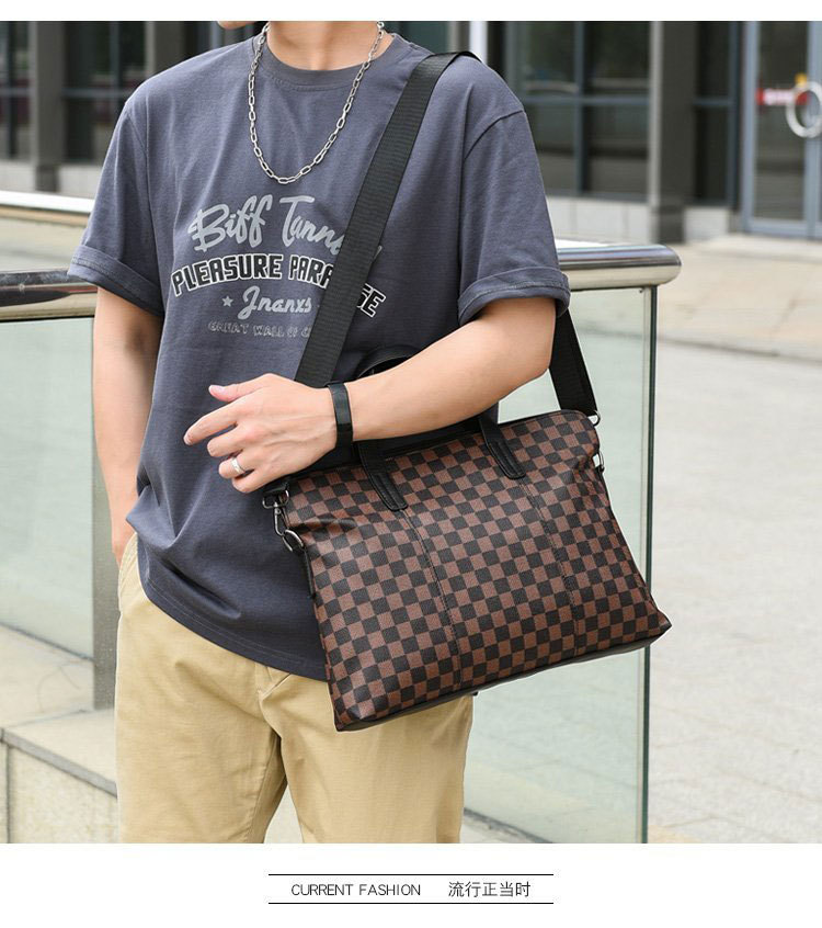 남성용 핸드백 2025 새로운 한국식 사무실 어깨 가방 체크 무늬 패션 유행 컴퓨터 패 블릿 크로스 바디 백