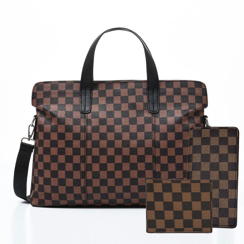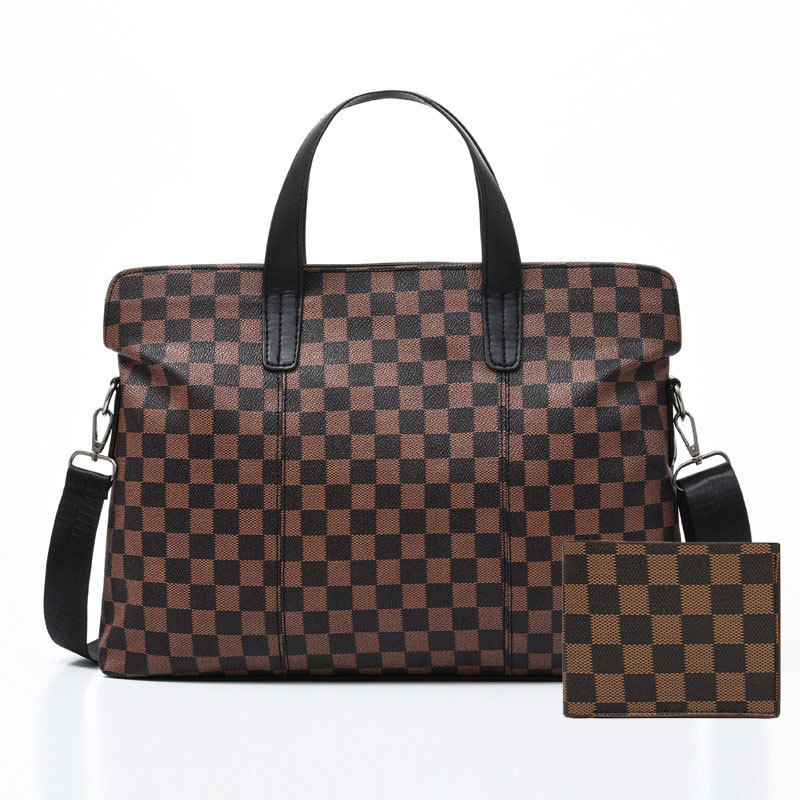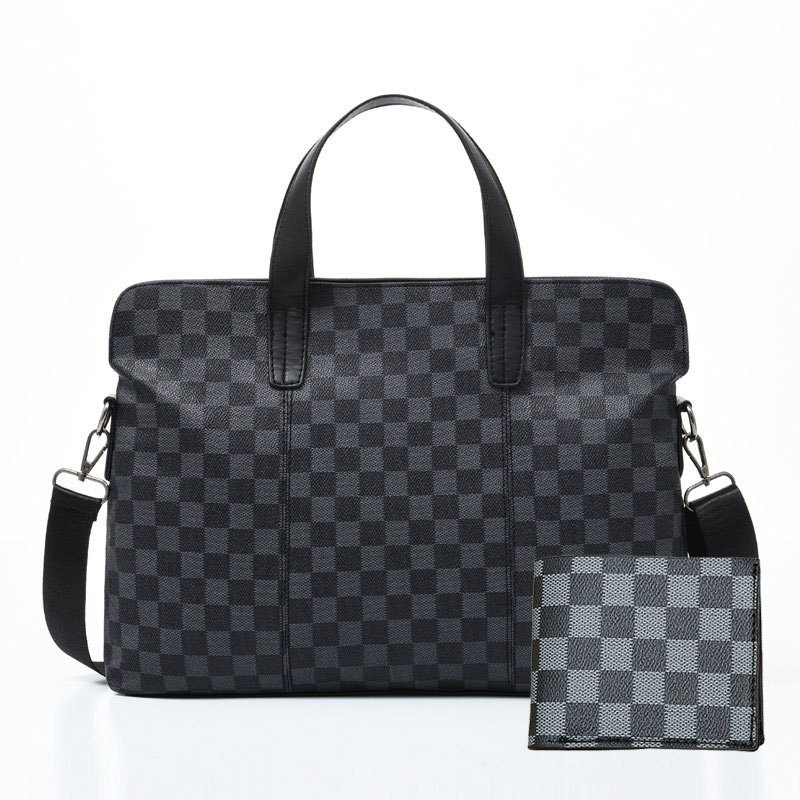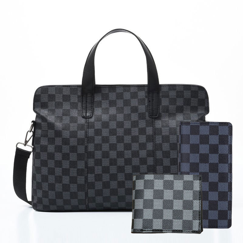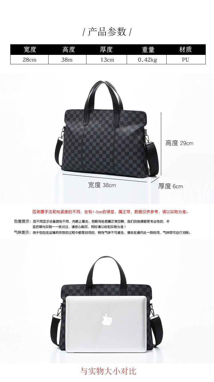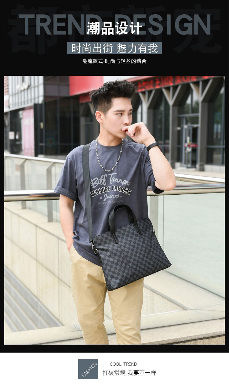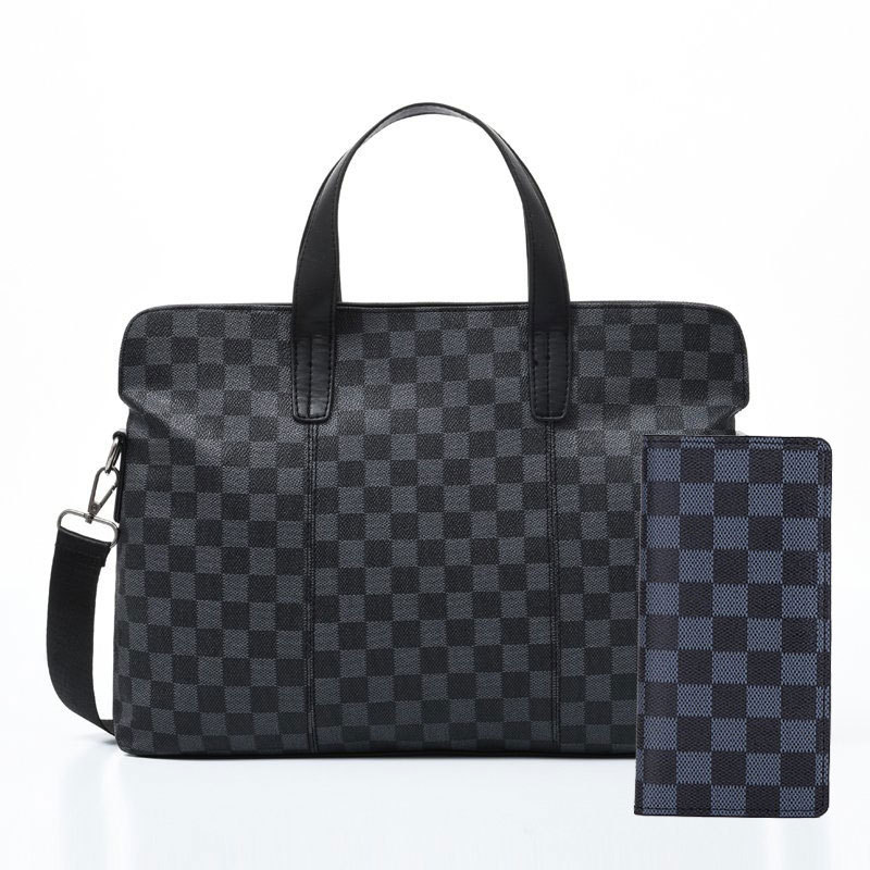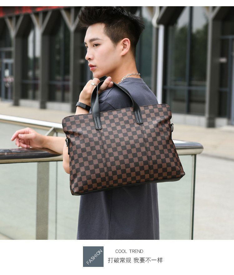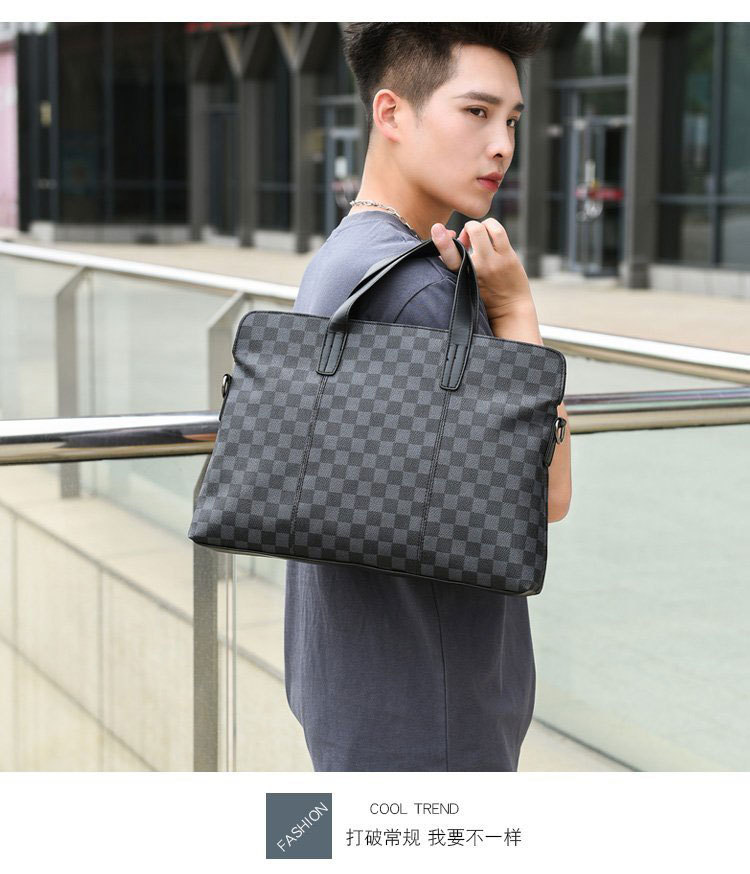 남성용 핸드백 2025 새로운 한국식 사무실 어깨 가방 체크 무늬 패션 유행 컴퓨터 패 블릿 크로스 바디 백