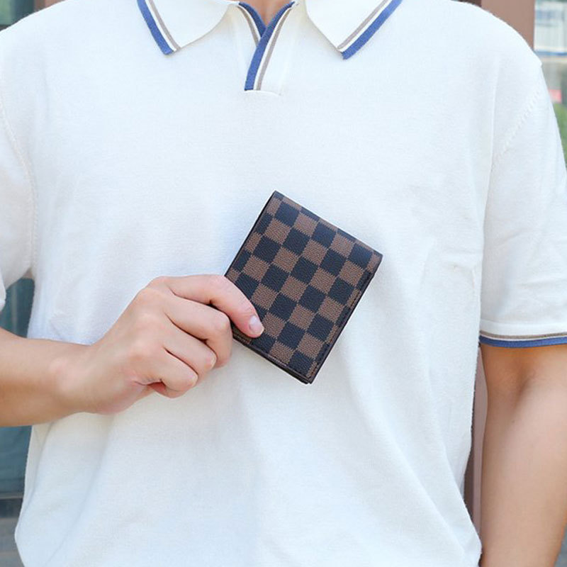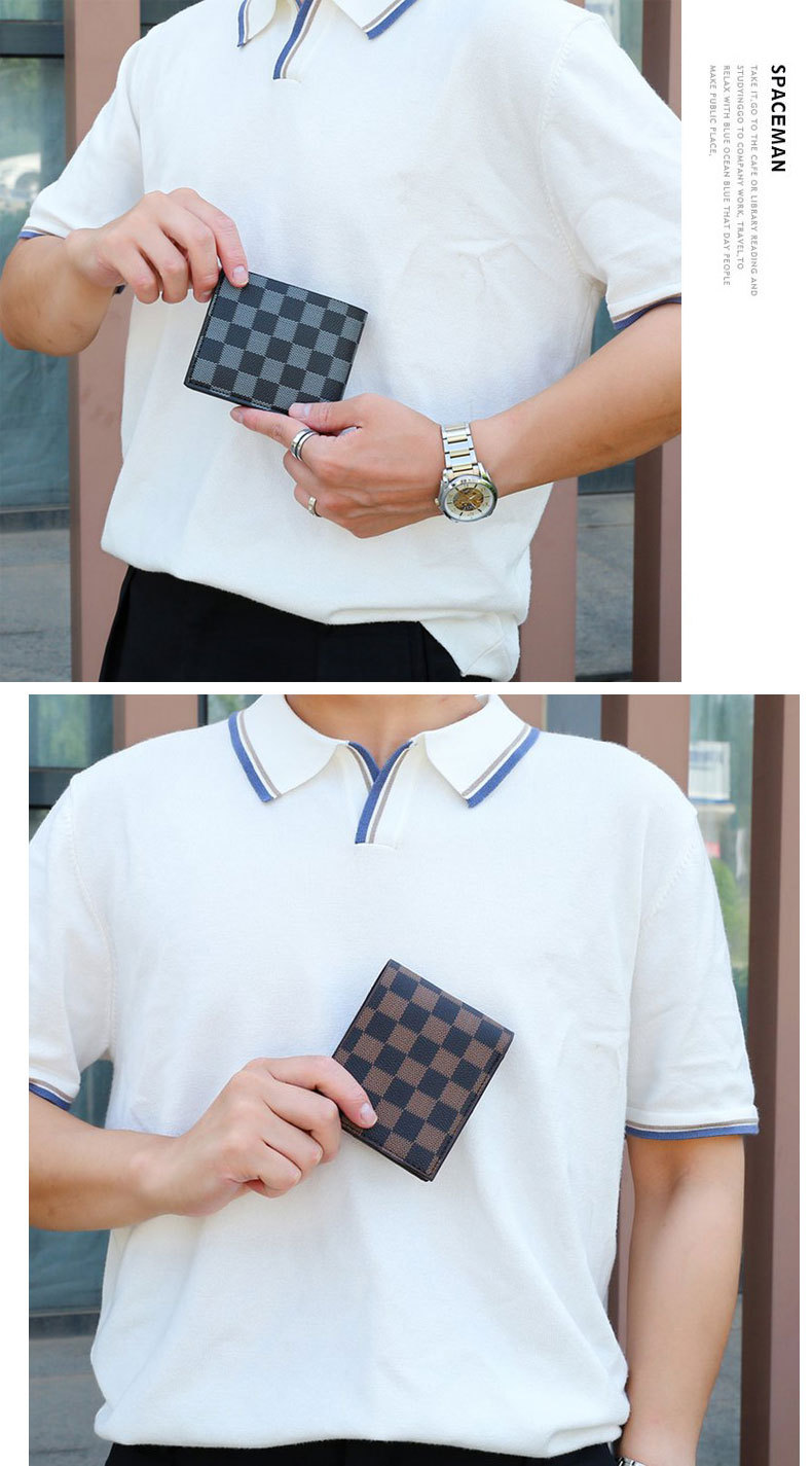 • 브라운 체크무늬 쇼트 지갑