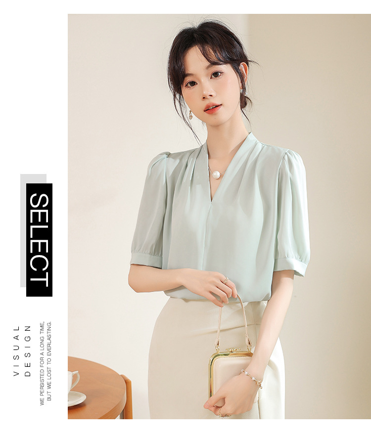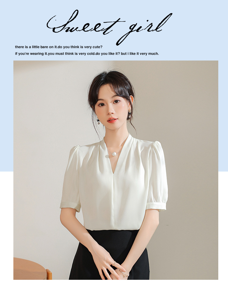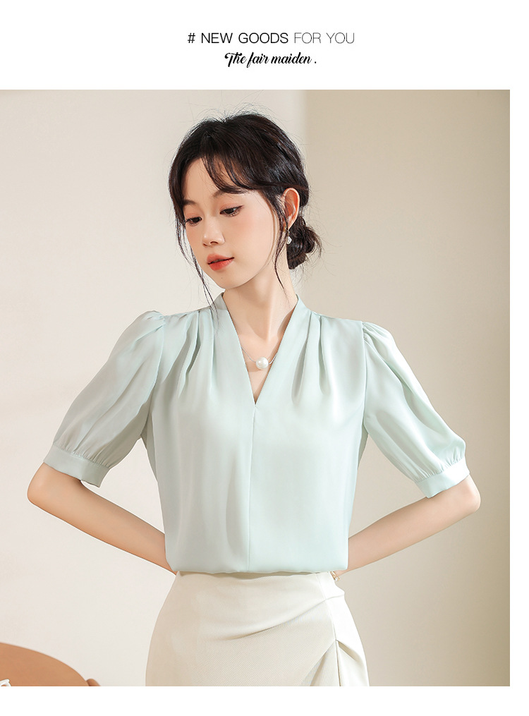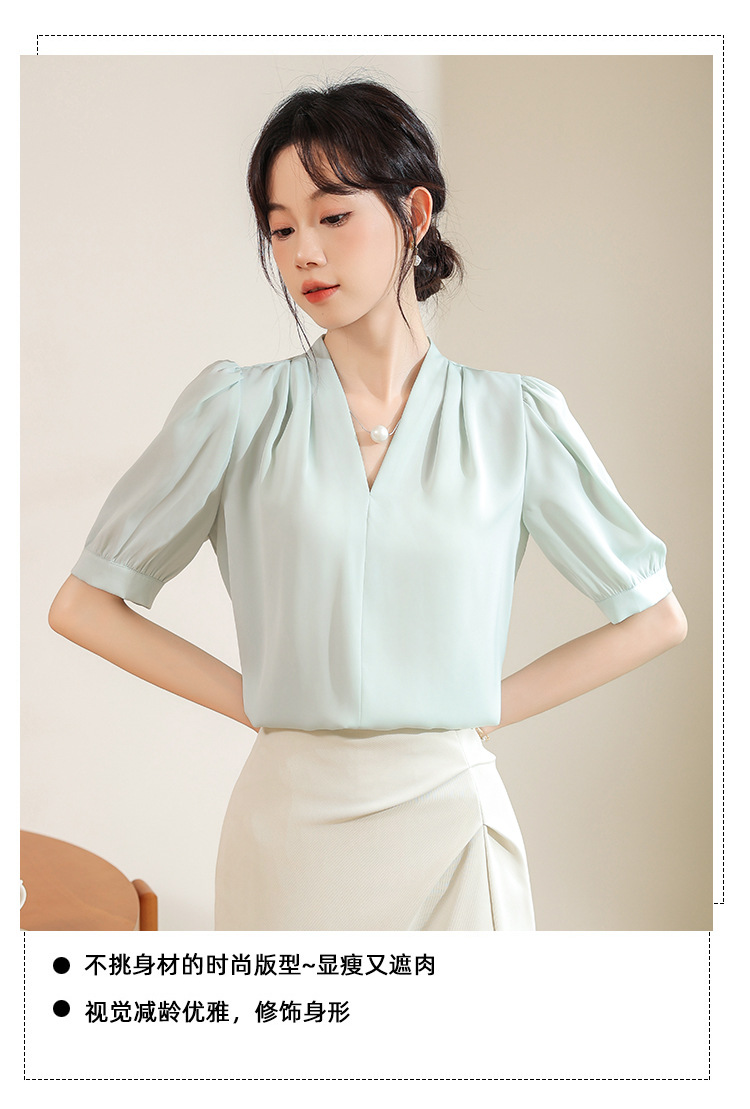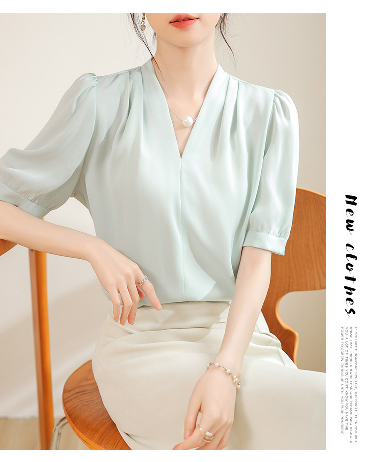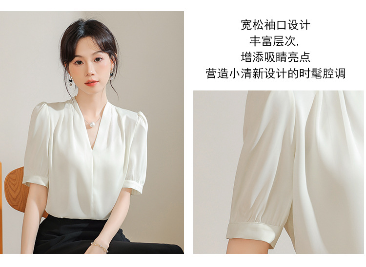 우아한 틈새 반팔 셔츠 여자 2025 년 여름 새로운 프랑스 사틴 통근 전문 탑스토어 가기