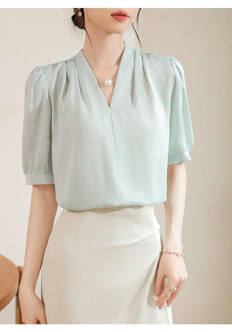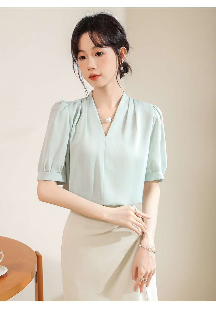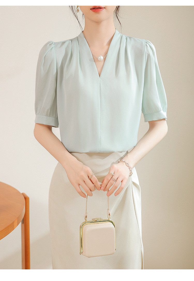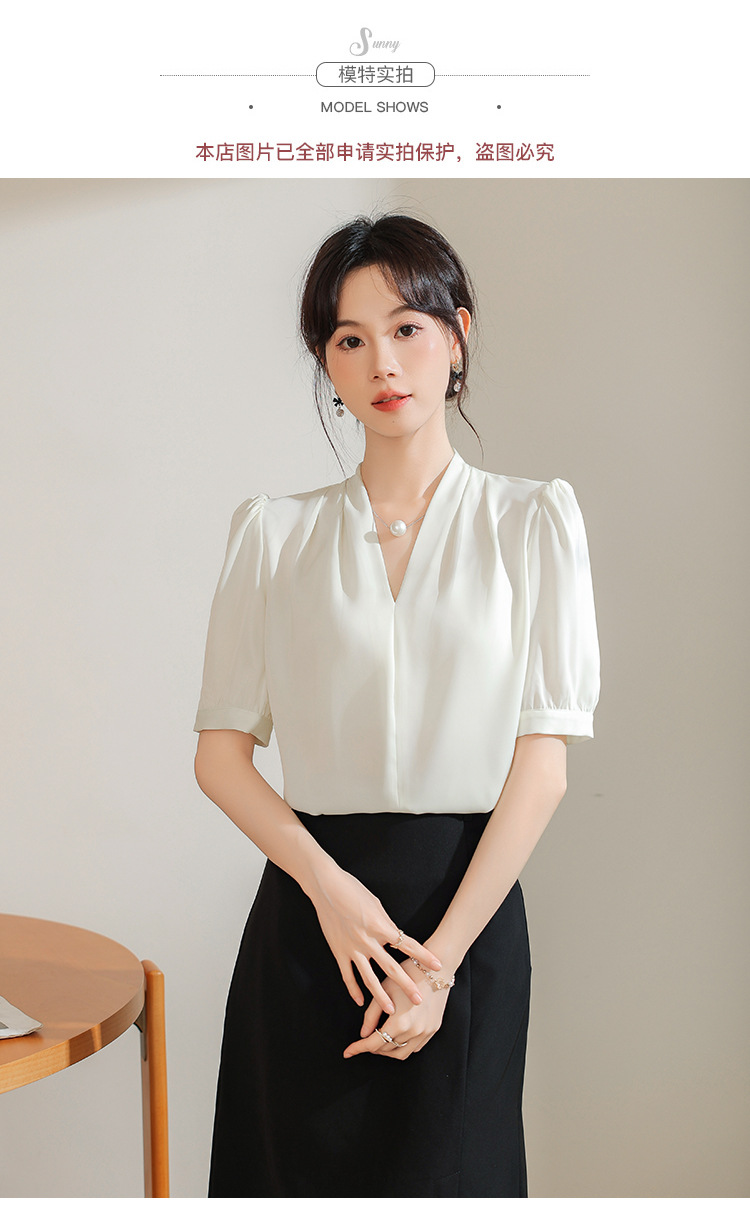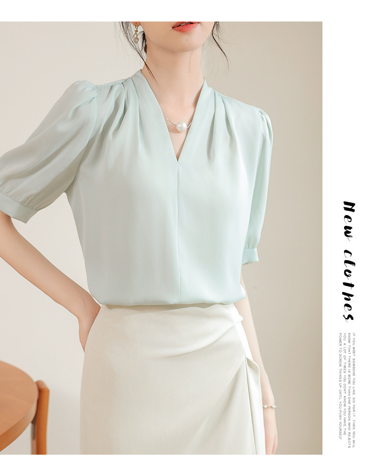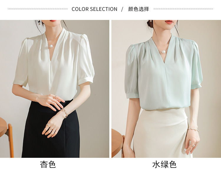 우아한 틈새 반팔 셔츠 여자 2025 년 여름 새로운 프랑스 사틴 통근 전문 탑스토어 가기