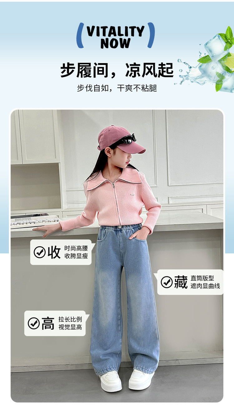 소녀 바지 봄과 여름 2025 새로운 서양식 어린이 좁은 직선 청바지 큰 어린이 얇은 넓은 다리 바지스토어 가기
