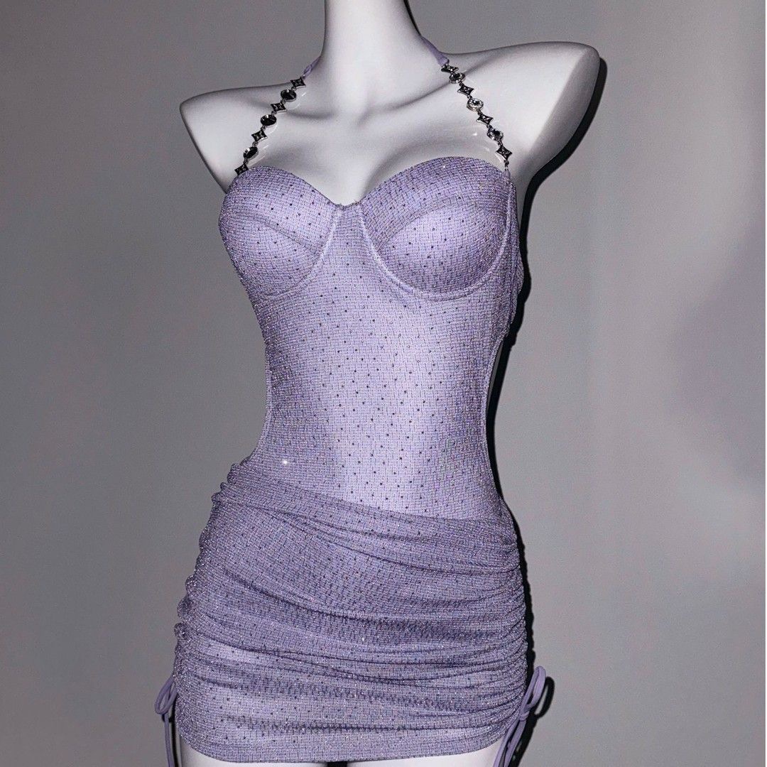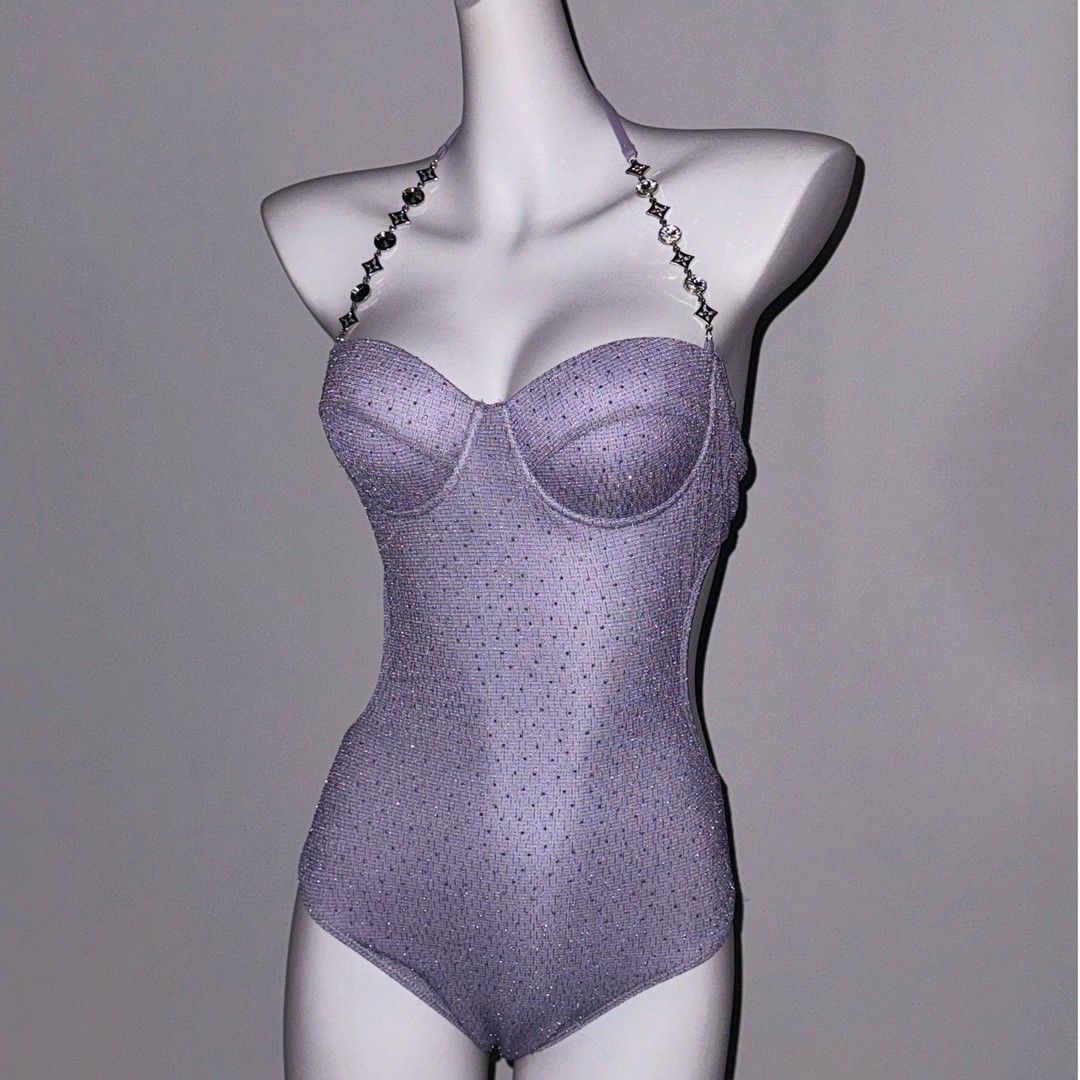 반짝이는 라인스톤 원피스 수영복 투피스 힙 커버 스커트 큰 가슴 언더와이어 푸쉬업 섹시 백리스 수영복