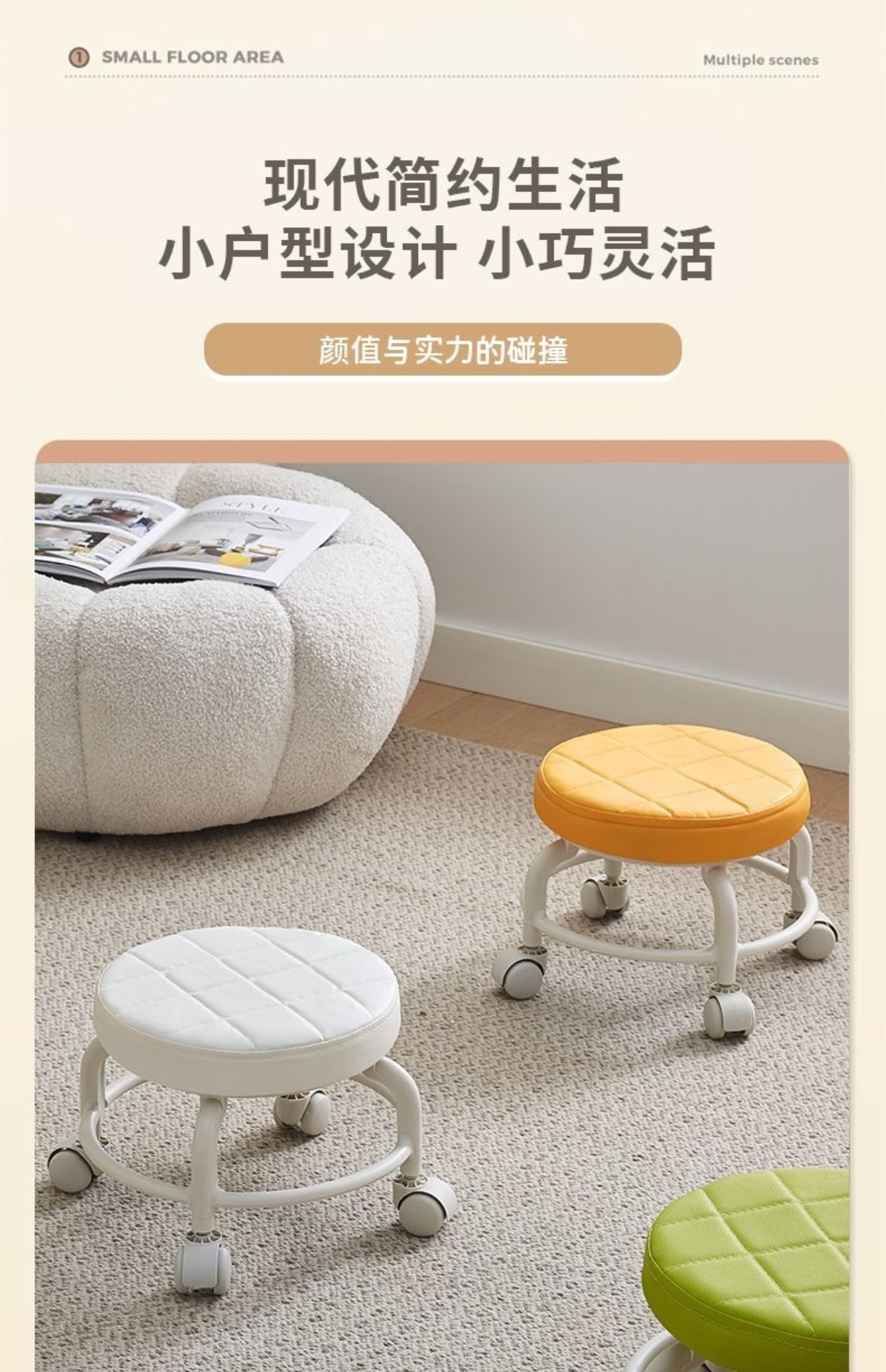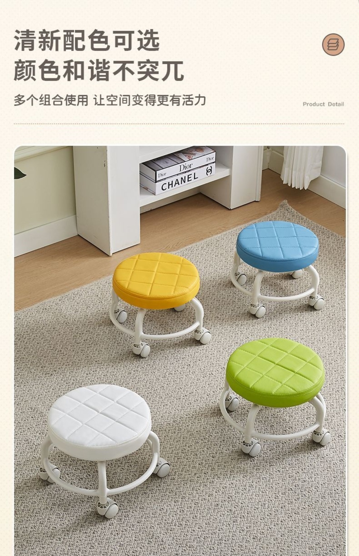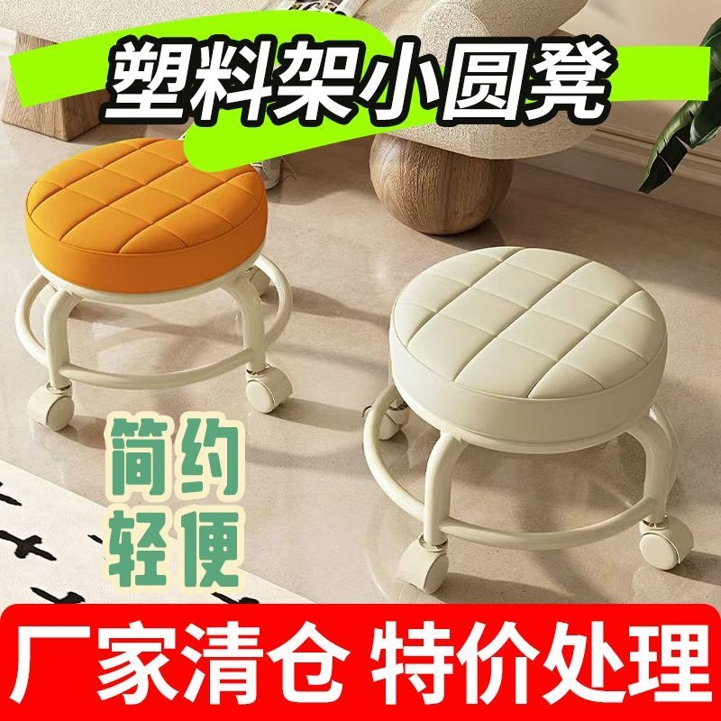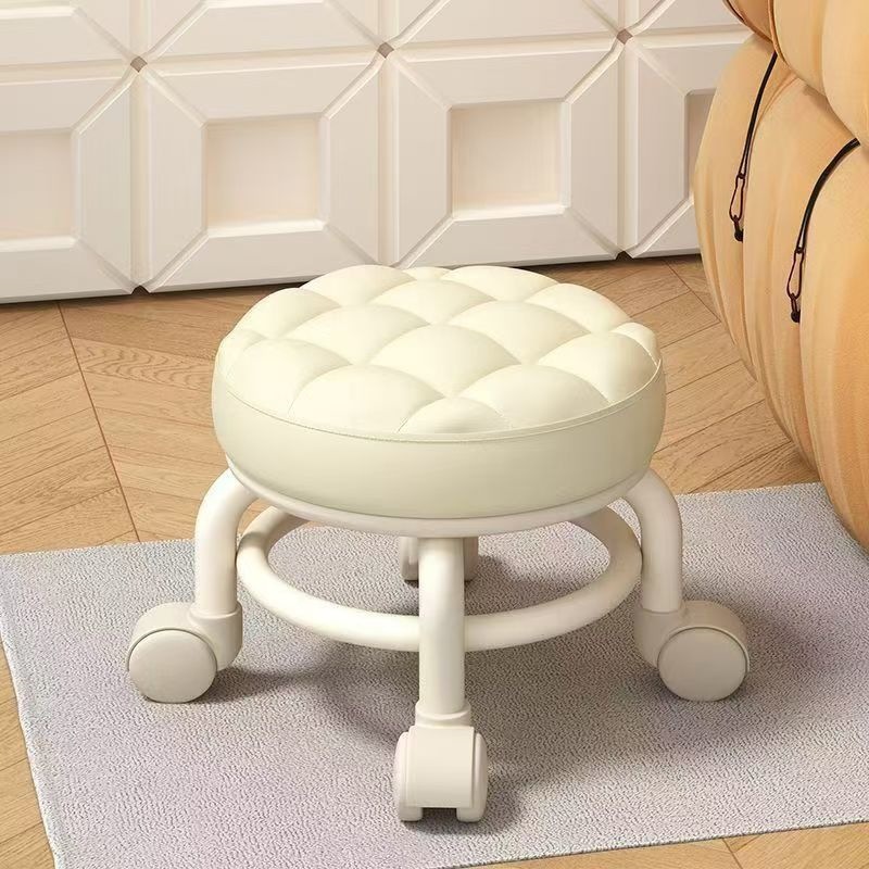 풀리 낮은 의자 유니버설 휠 작은 의자 신발 변경 의자 현관 가구 성인 풀리 의자 다기능 아름다운 봉제 라운드 의자스토어 가기