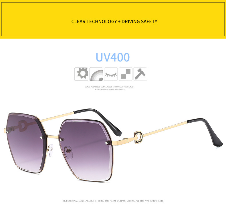 25 새로운 도착 프레임리스 컷 엣지 패션 선글라스 Ins 여성 높은 감각 선 스크린 UV 보호 트렌드 선글라스 도매