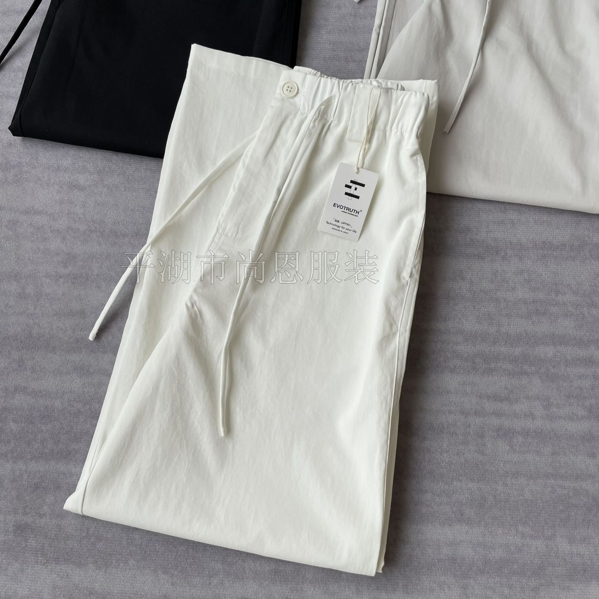 일본 진 입 투명 자외선 차단제 직물 빛 느낌! 여성용 리넨 코튼 드로우 스트링 루즈 핏 스트레이트 팬츠스토어 가기