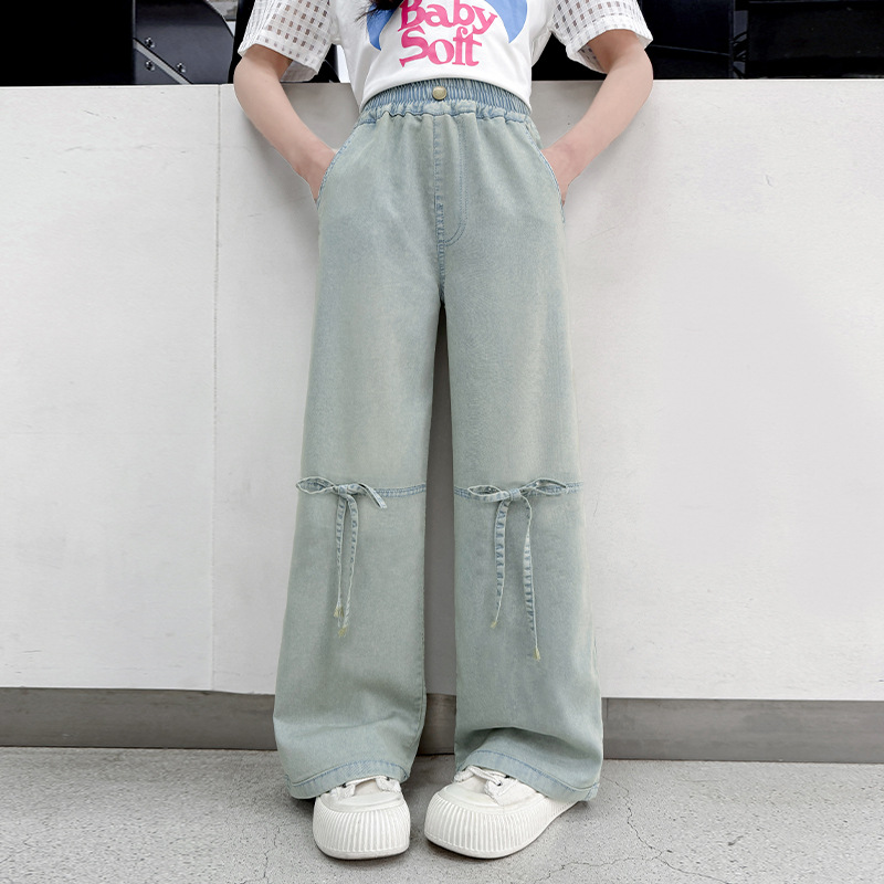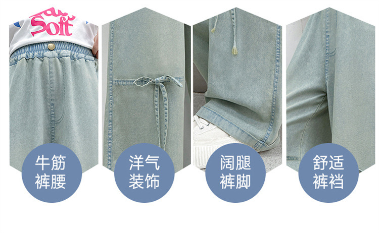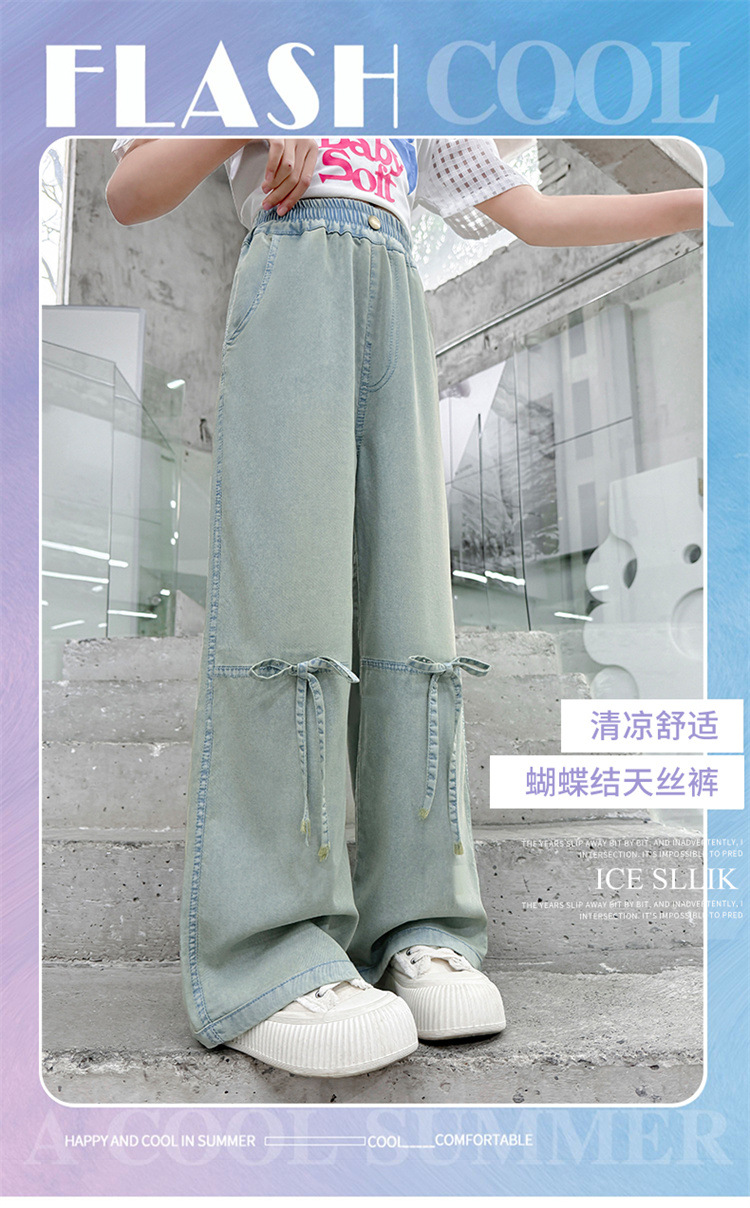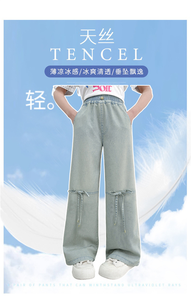 소녀 여름 텐셀 청바지 2025 새로운 서양 스타일 유행 중 큰 어린이 얇은 넓은 다리 바지 한국 스타일 트렌디 바지스토어 가기