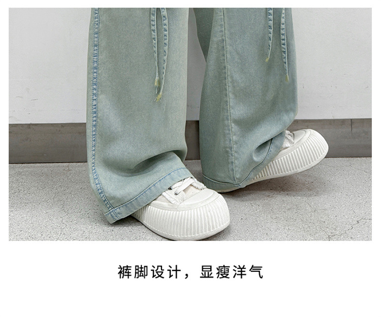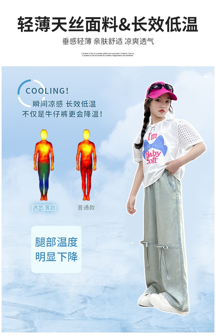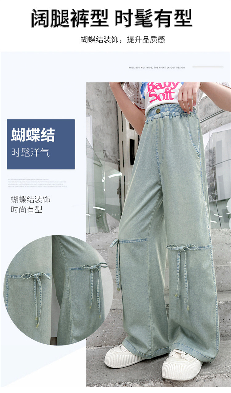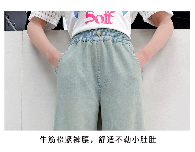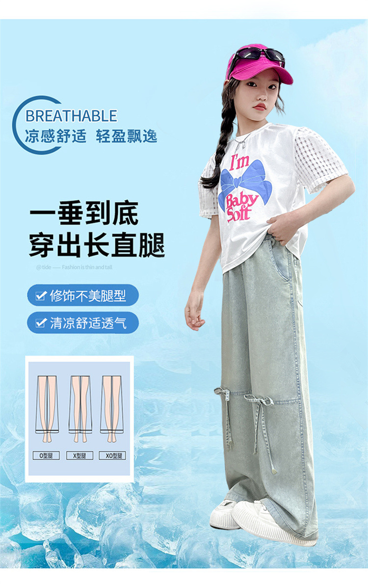 소녀 여름 텐셀 청바지 2025 새로운 서양 스타일 유행 중 큰 어린이 얇은 넓은 다리 바지 한국 스타일 트렌디 바지스토어 가기