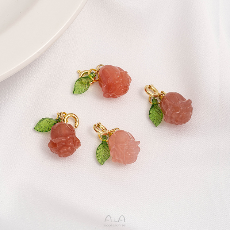 천연 남부 붉은색 캔디 컬러 달토끼 펜던트 안전 버클 사각 런링 리치 젤리 피쉬 테일 펜던트 쥬얼리 펜던트