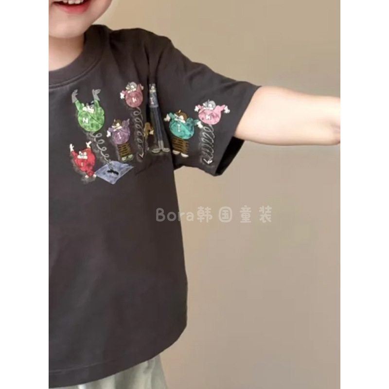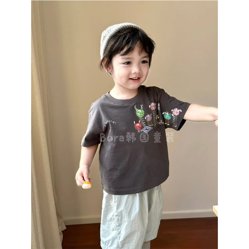 남학생 반팔 티셔츠 어린이 여름 2025 새로운 서양식 만화베이스 셔츠 아기 소녀의 더피 핸섬 스타일 탑 트렌디 3스토어 가기