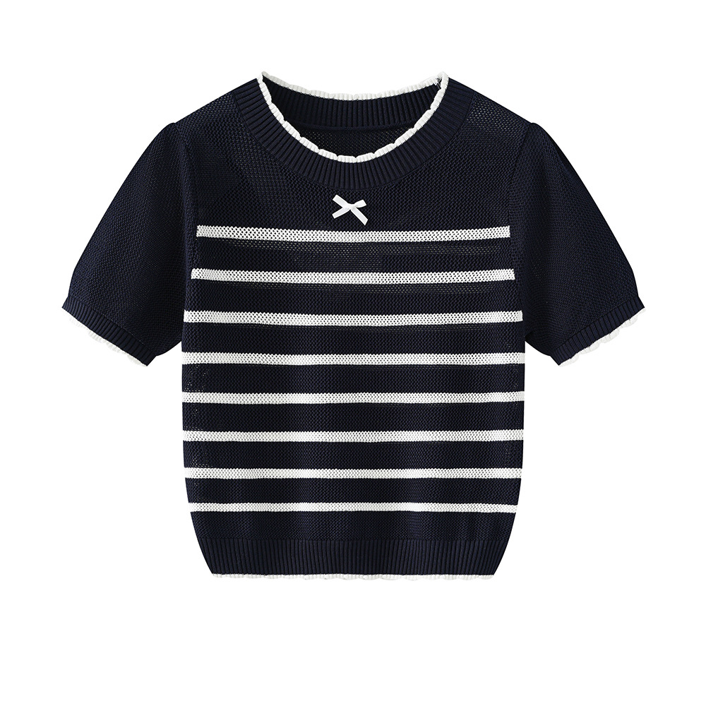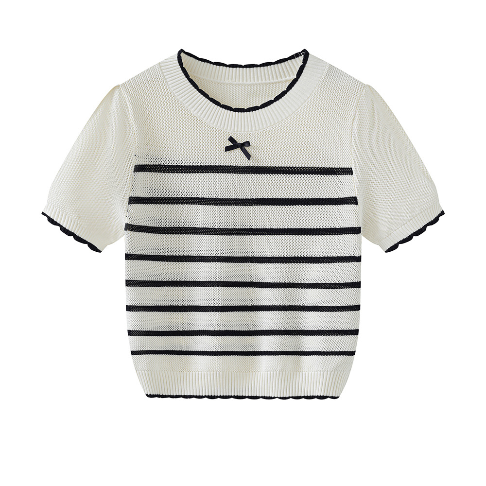 2025 봄 새로운 여성 패션 대비 컬러 라인 활 크루 넥 스웨터스토어 가기
