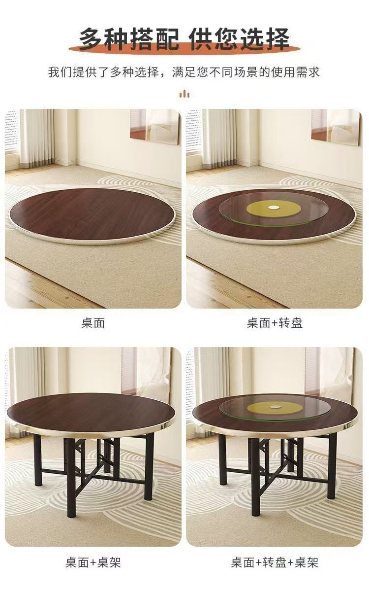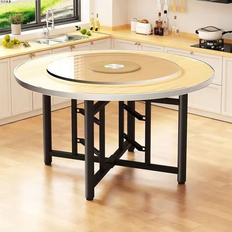 식탁 라운드 테이블 12 가족 식사 테이블 상업 연회를위한 턴테이블이있는 접이식 농촌 접이식 선반스토어 가기