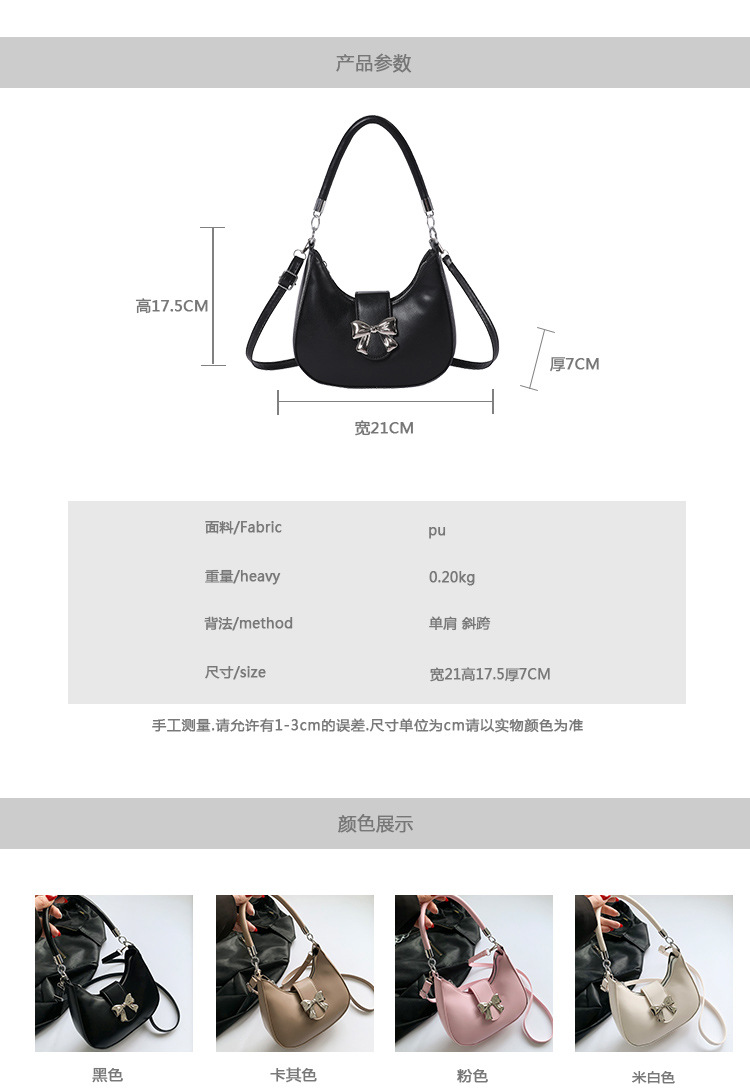 패션 올 매치 보우 핸드백 2025 봄 새로운 인기있는 언더 암 숄더 여성용 가방 간단한 크로스 바디 백스토어 가기