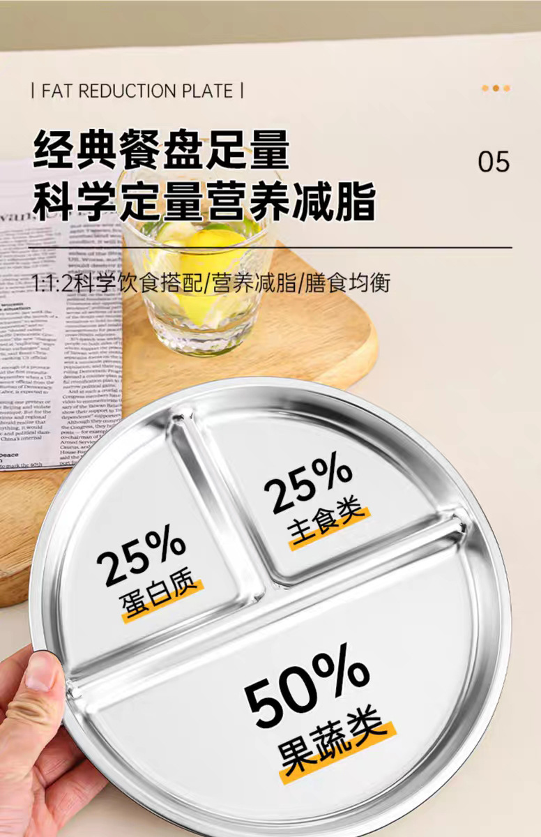 304 스테인레스 스틸 스플릿 플레이트 양적 3 칸 디스크 성인 플레이트 학생 양적 비율 분할 플레이트스토어 가기