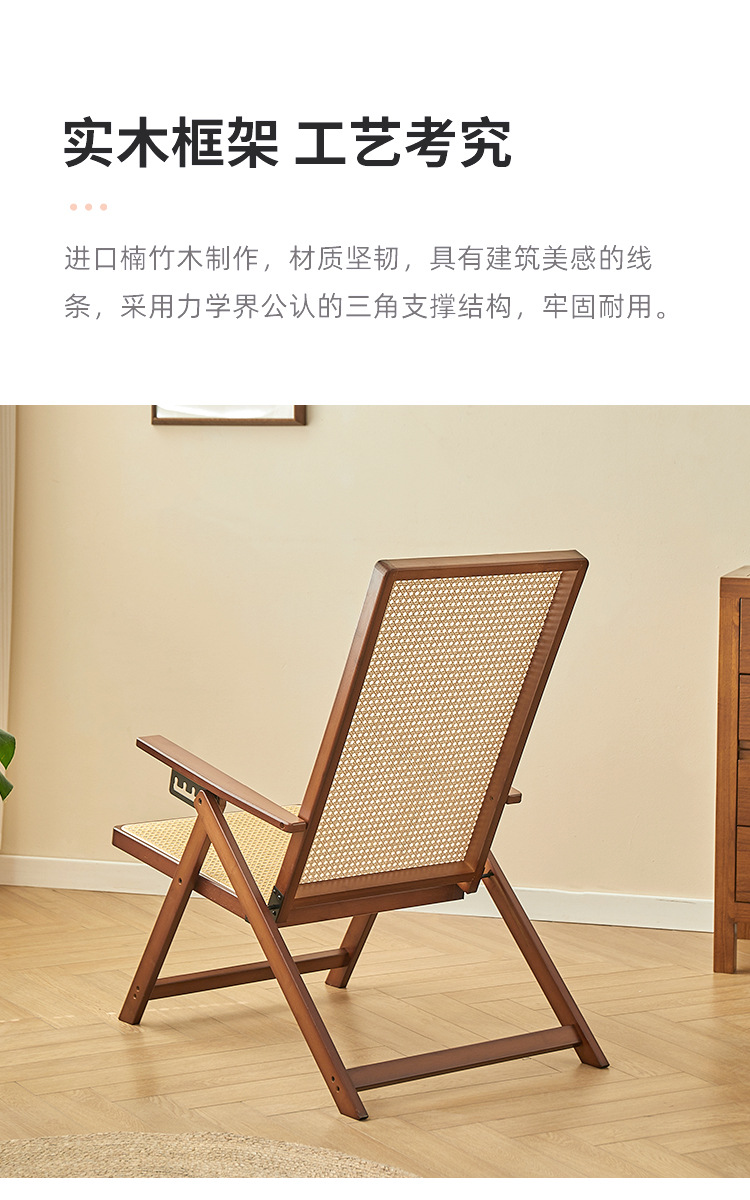 가정 점심 시간에 앉거나 누워서 사용할 수 있는 라운지 의자 등나무 접이식 야외 휴대용 의자, 발코니 대나무 및 등나무 의자 캠핑 및 레저 s^