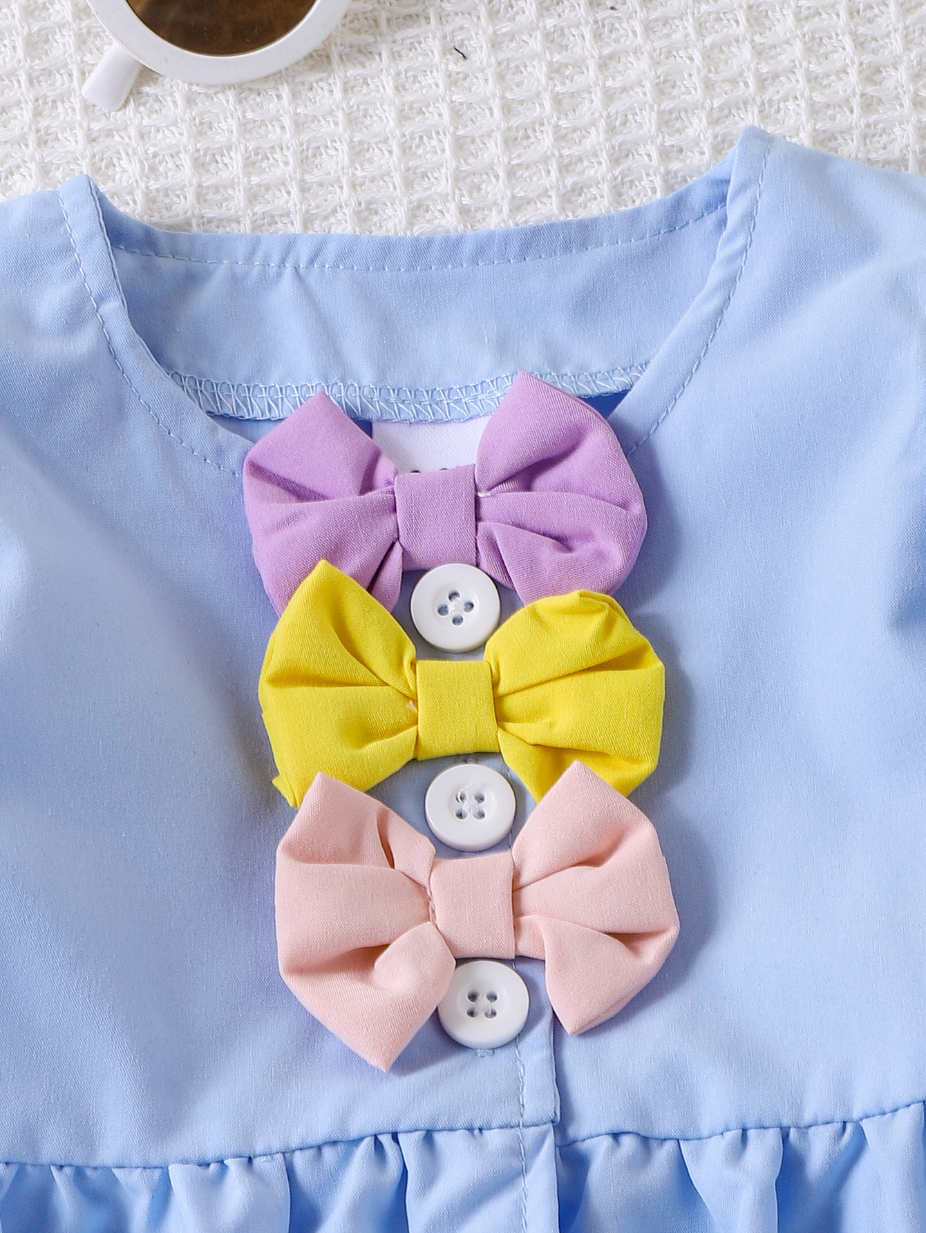 유럽과 미국의 국경 간 여름 귀여운 0-3 세 소녀 세트 중소 어린이 버블 슬리브 나비 반팔 반바지