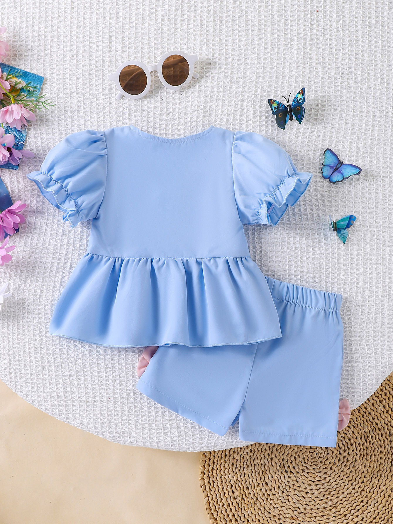 유럽과 미국의 국경 간 여름 귀여운 0-3 세 소녀 세트 중소 어린이 버블 슬리브 나비 반팔 반바지스토어 가기