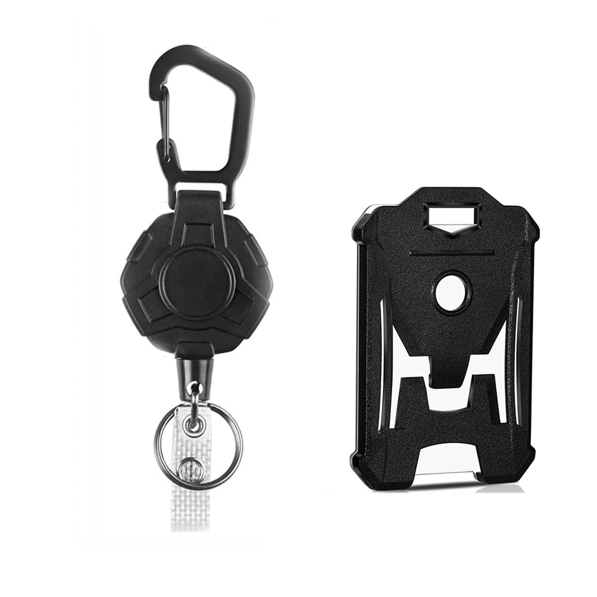 블랙 카드 홀더와 함께 접이식 배낭 펜던트가있는 블랙 헤비 듀티 카라비너 ​​이지 풀 버클 배지 클립 도매스토어 가기