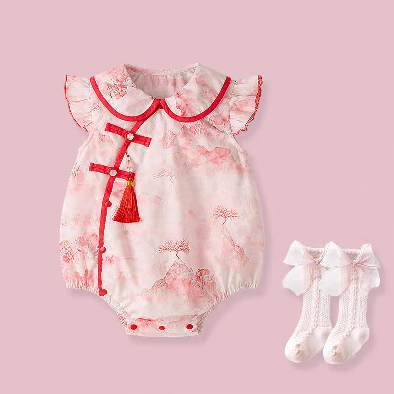 아기 옷 여름 신생아 아기 소녀의 원피스 옷 보름달 백일 국가 스타일 하하 옷 여름 옷 얇은 가방 방귀 옷