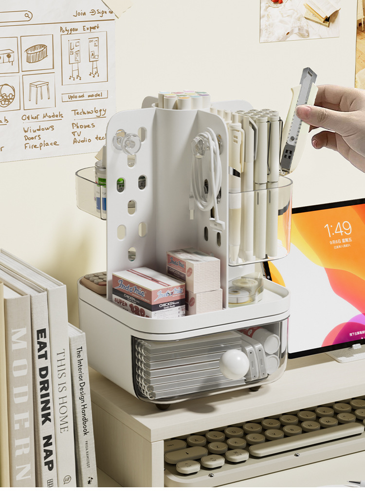 회전 홀 보드 데스크탑 스토리지 박스 스토리지 랙 데스크 다기능 학생 어린이 문구 배열 서랍 상자