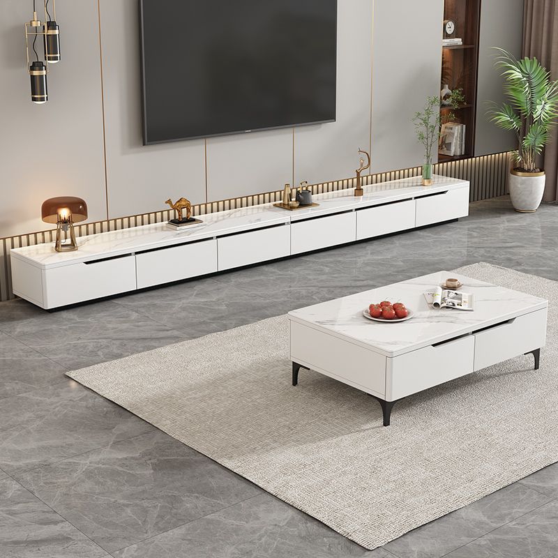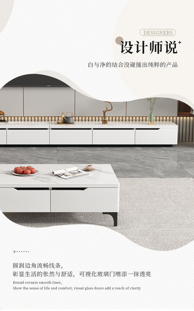 크림 스타일 록 보드 TV 캐비닛 현대 간단한 흰색 거실 홈 작은 아파트 바닥 빛 럭셔리 커피 테이블 조합스토어 가기