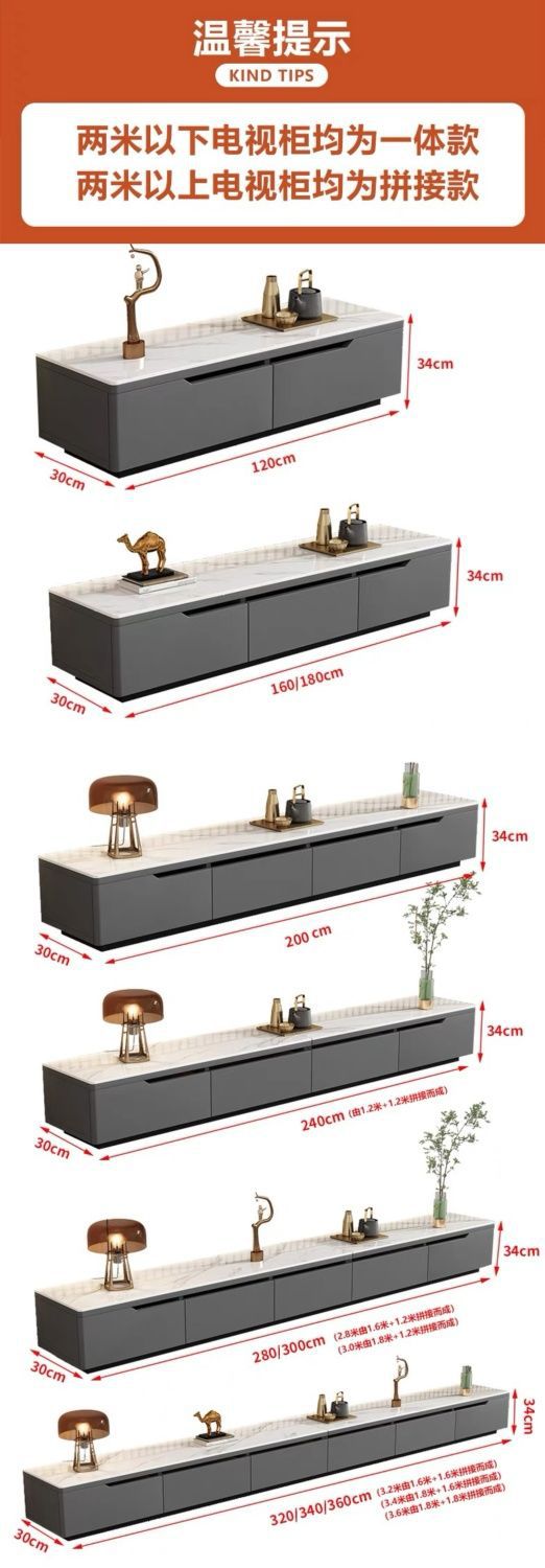 • 3.4M TV 캐비닛 X 두꺼운 암석판 소재
