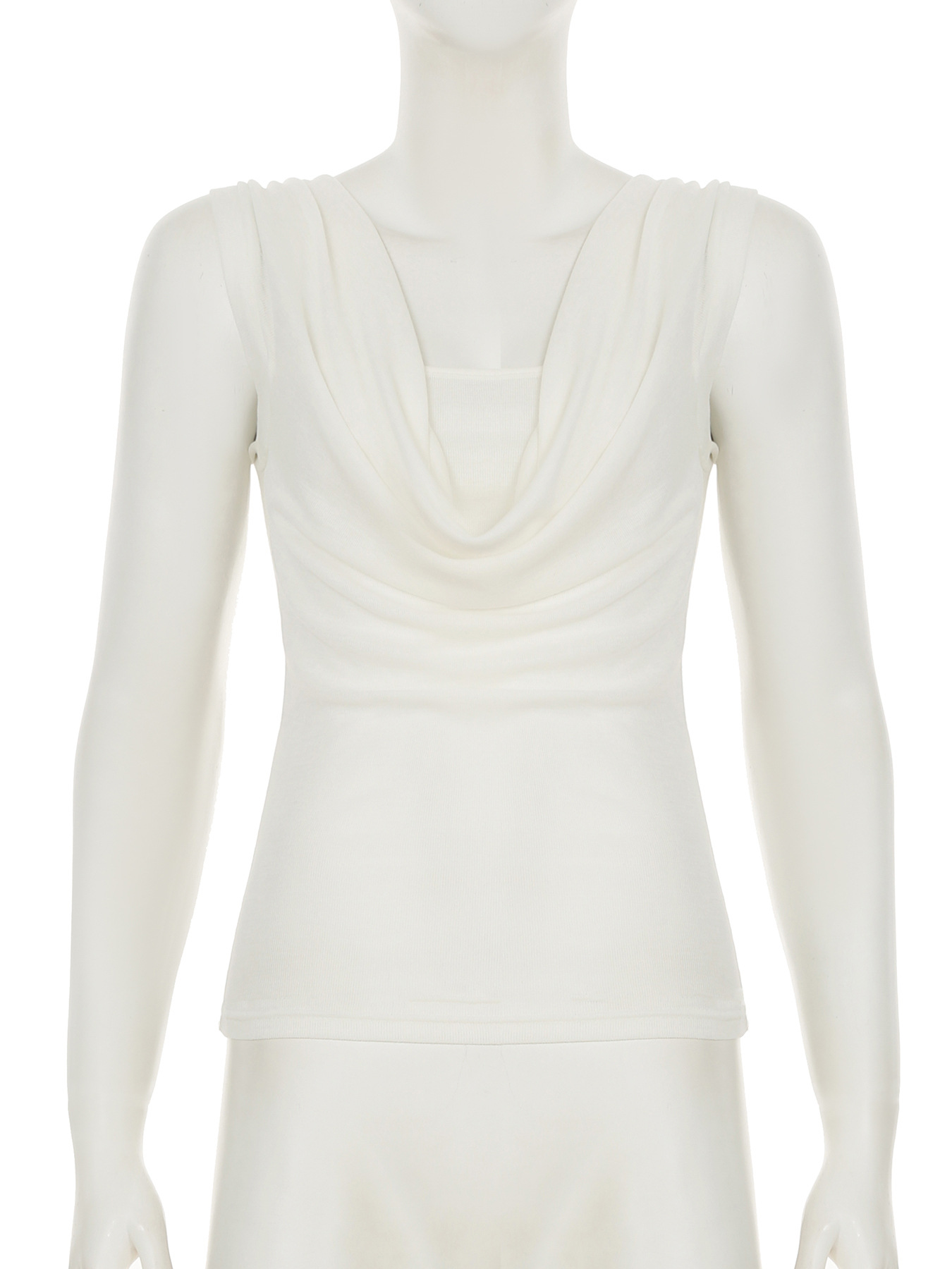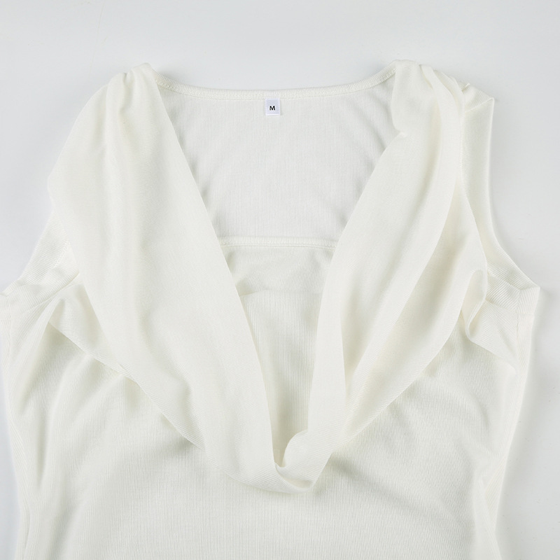 유럽과 미국의 거리 뜨거운 소녀 스타일 가짜 투피스 우아한 주름 허리 스윙 칼라 민소매 티셔츠 단색 간단한 슬림 탑스토어 가기