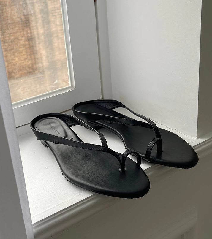 정품 가죽 한국 스타일 슬립 플롭 여성 아우터웨어 여름 새로운 유행 두꺼운 힐 작은 웨지 샌들