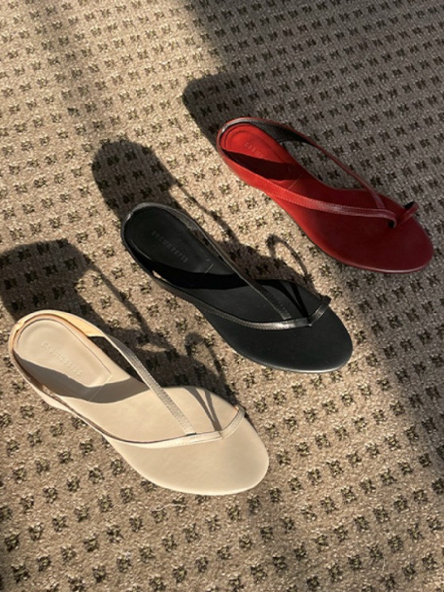 정품 가죽 한국 스타일 슬립 플롭 여성 아우터웨어 여름 새로운 유행 두꺼운 힐 작은 웨지 샌들스토어 가기