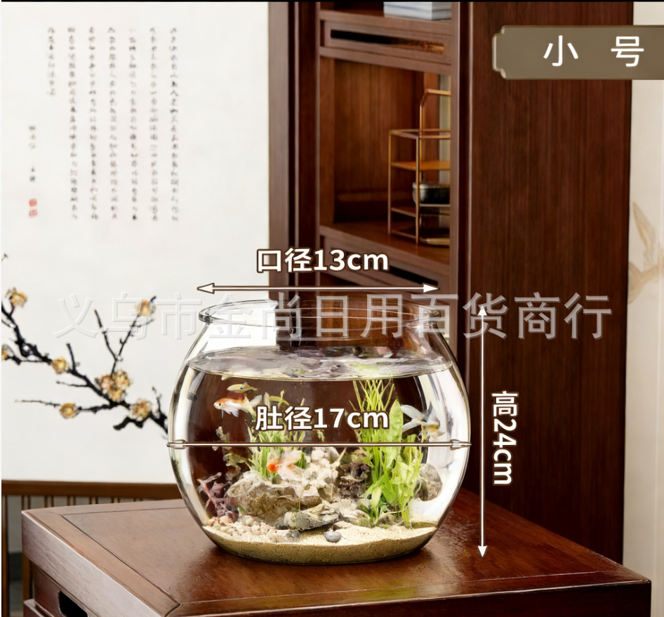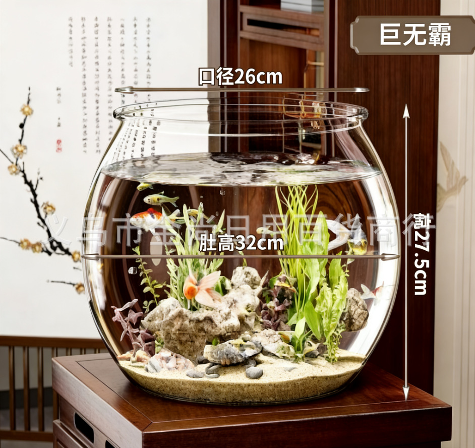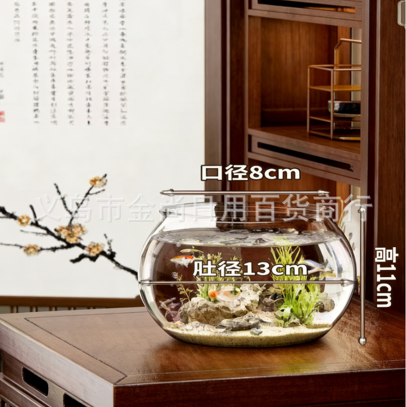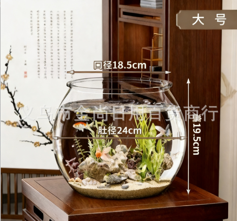 낙하 방지 및 파손 방지, 거실 소형 조경 데스크탑 생태 탱크, 원형 수조, 플라스틱 일체형 모조 유리스토어 가기