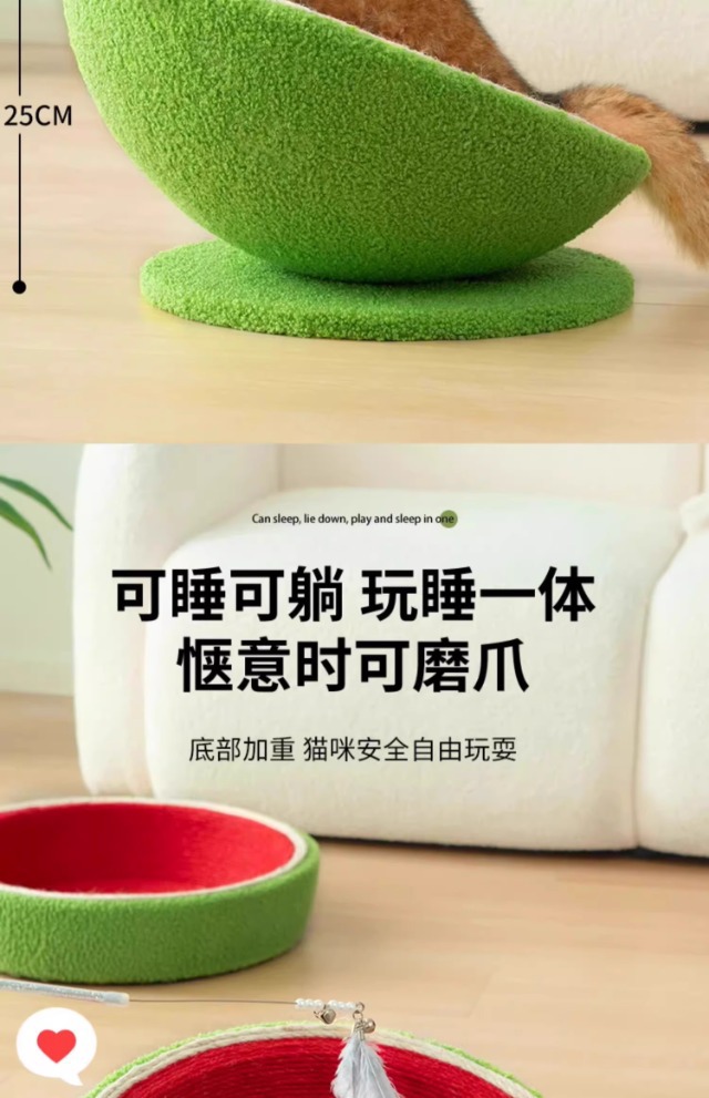 • [수박고양이 긁는둥지 - 반마소재] (안감은 벨벳, 겉감은 사이잘)