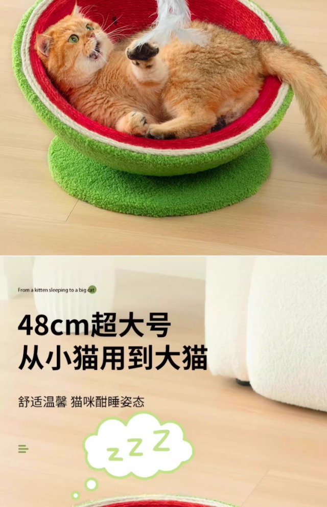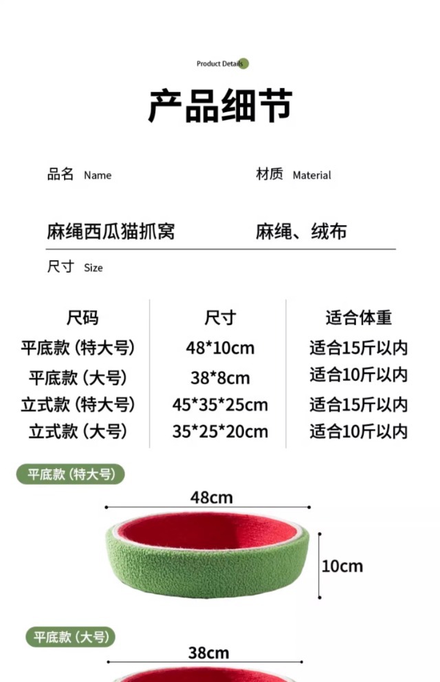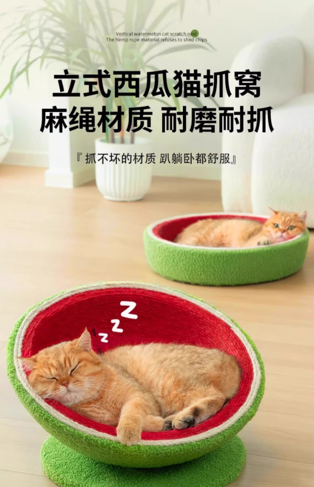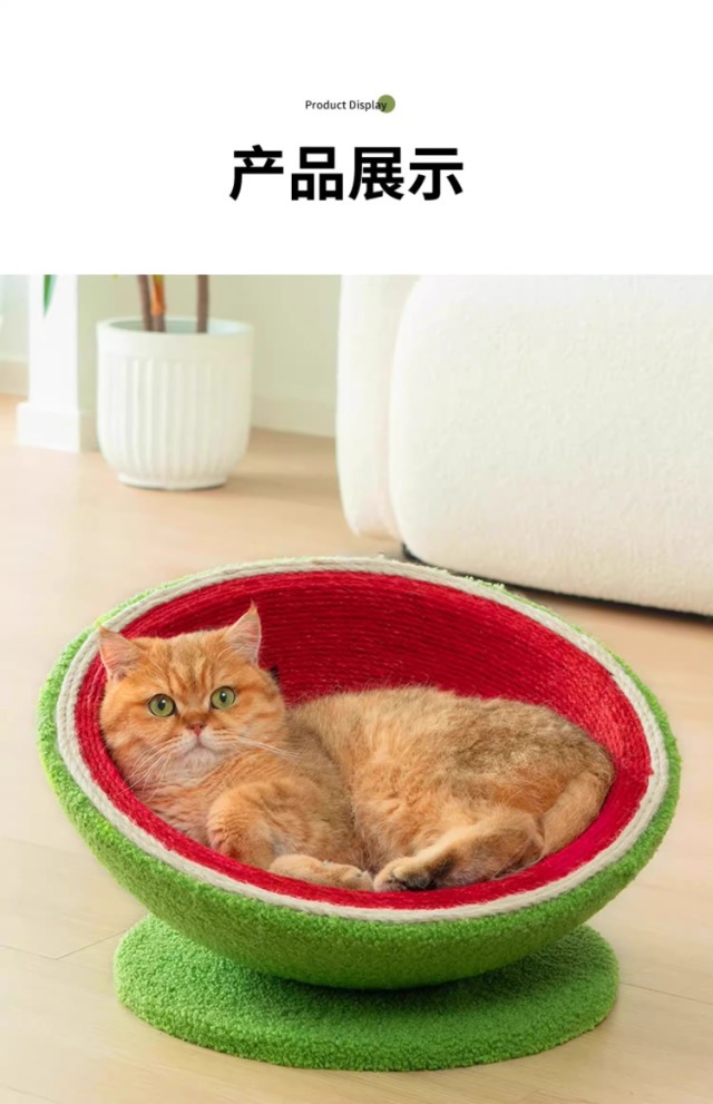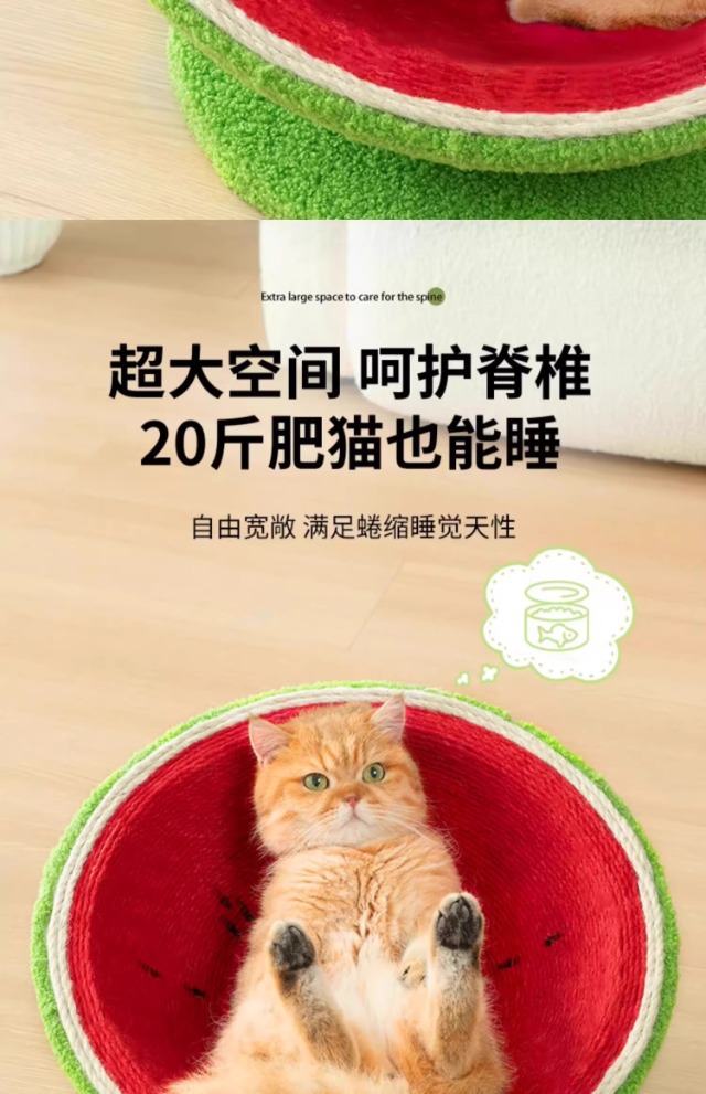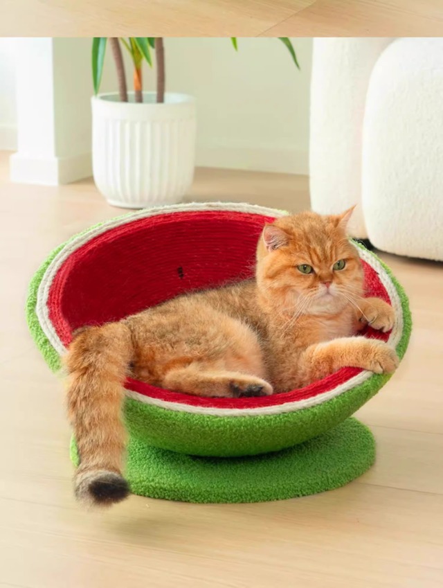 • [특대형 수박고양이 긁는 둥지 - 전체 대마 소재] 발톱을 갈고 휴식을 취하세요