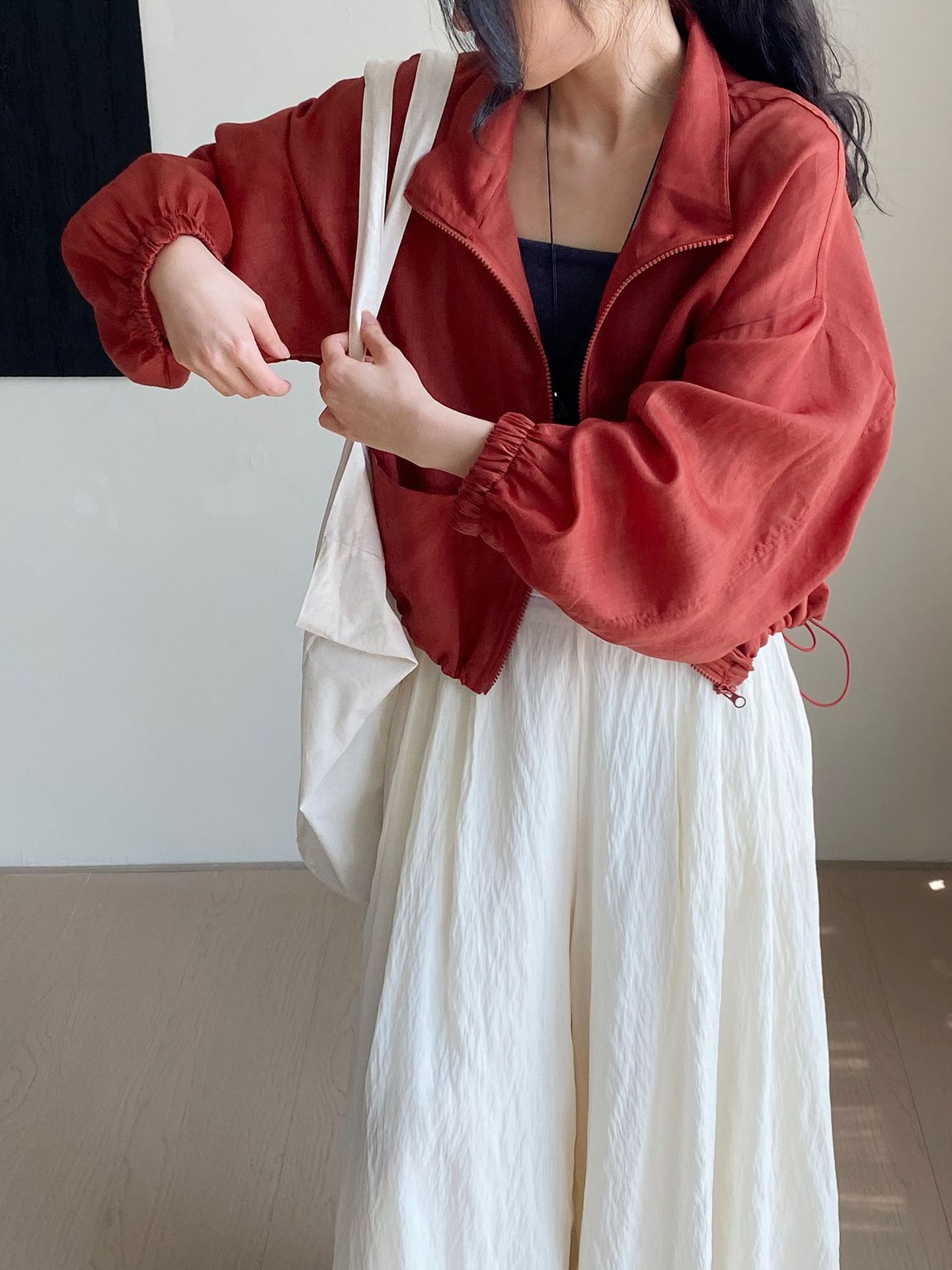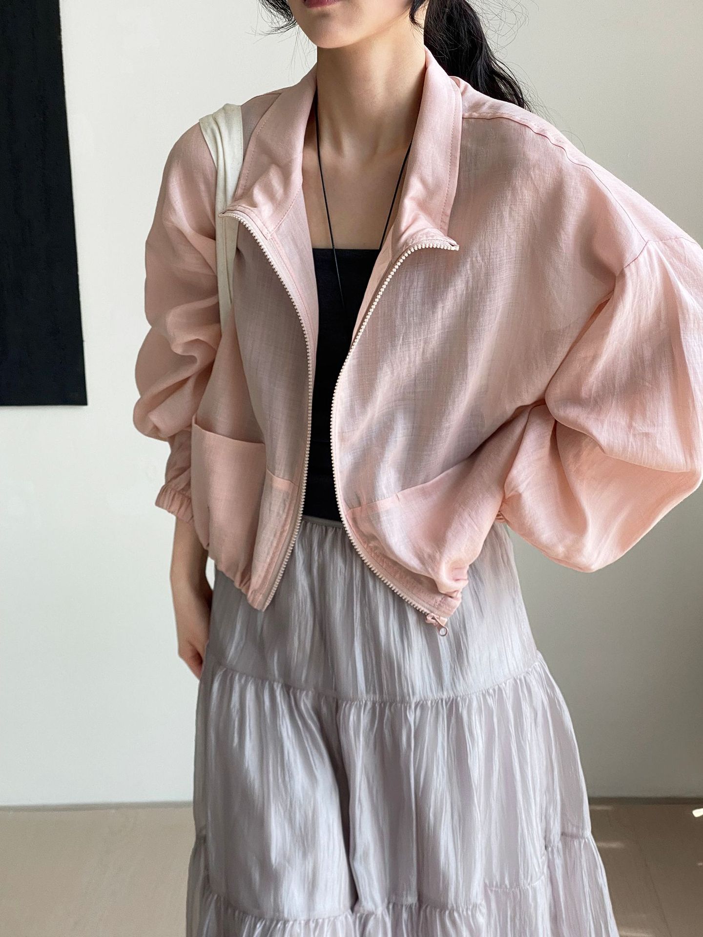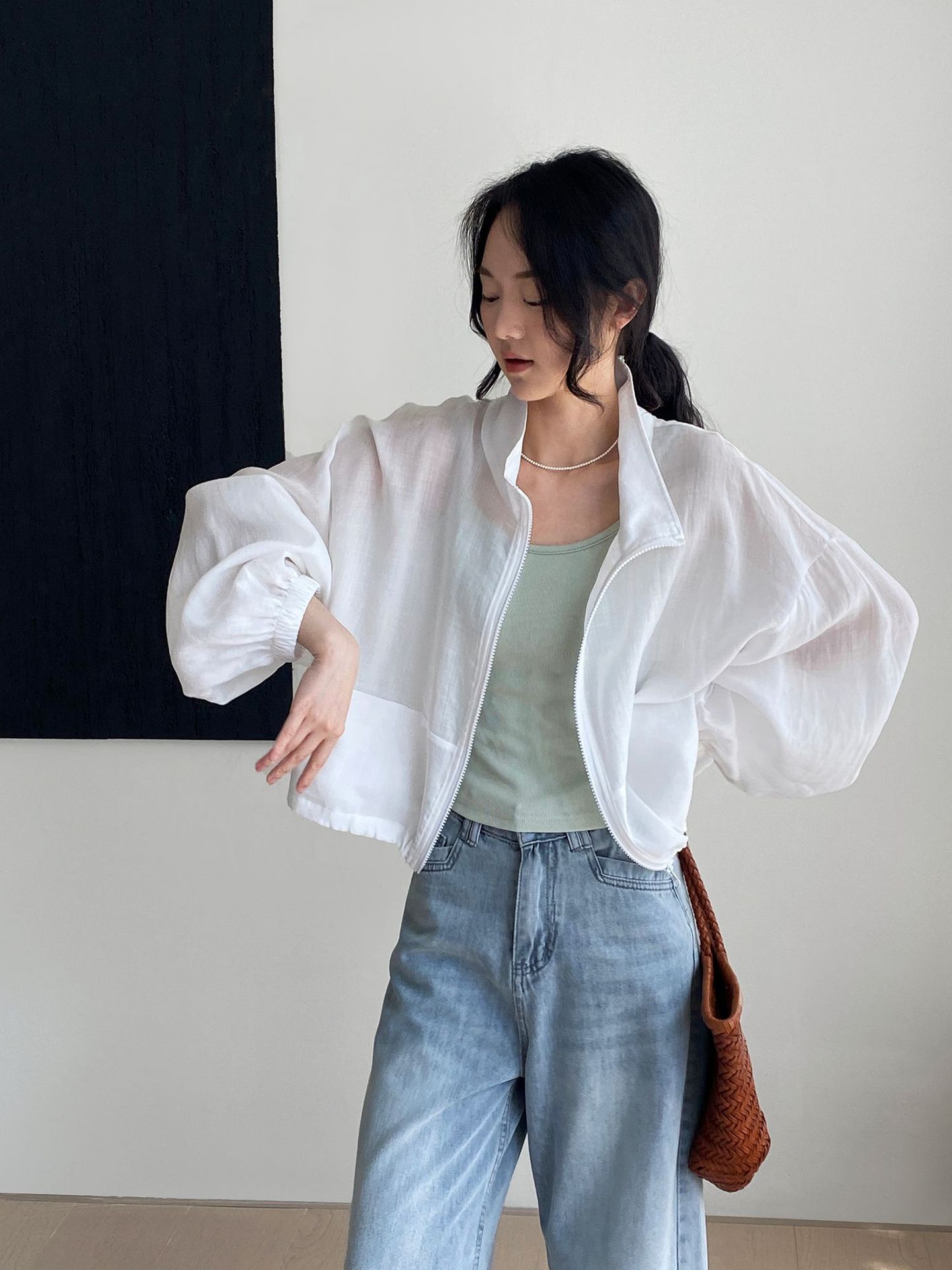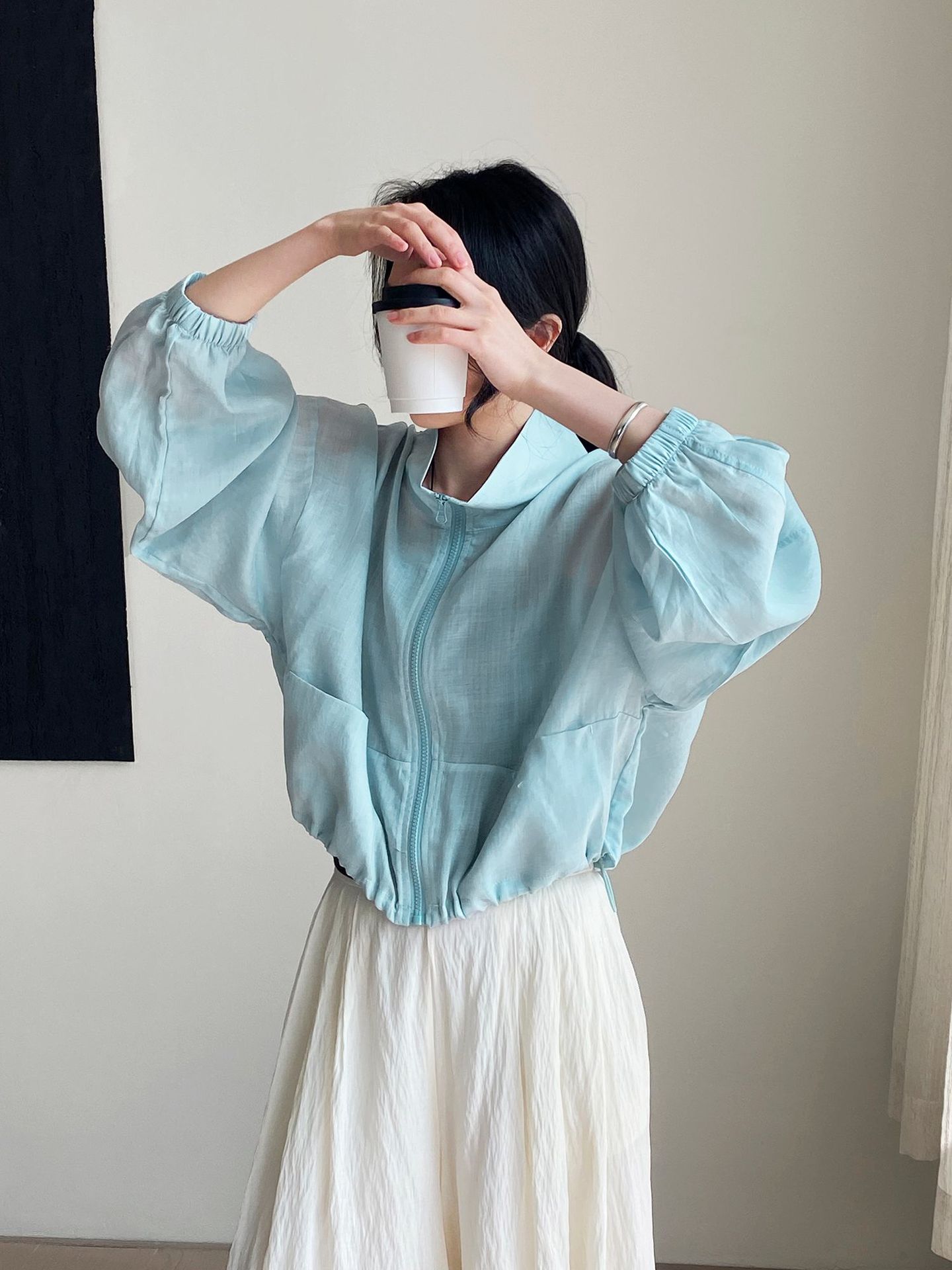 텍스처 자외선 차단제의 끝에! 수직 칼라 텐셀 라미 선 스크린 경량 짧은 코트 카디건 E7719스토어 가기