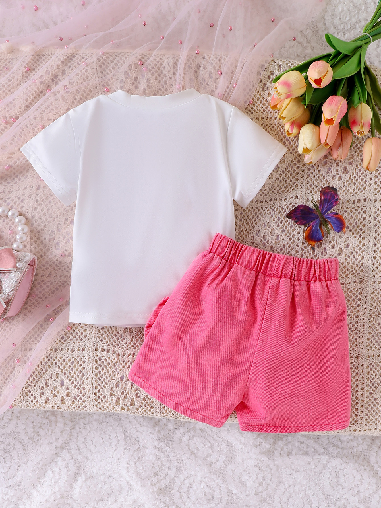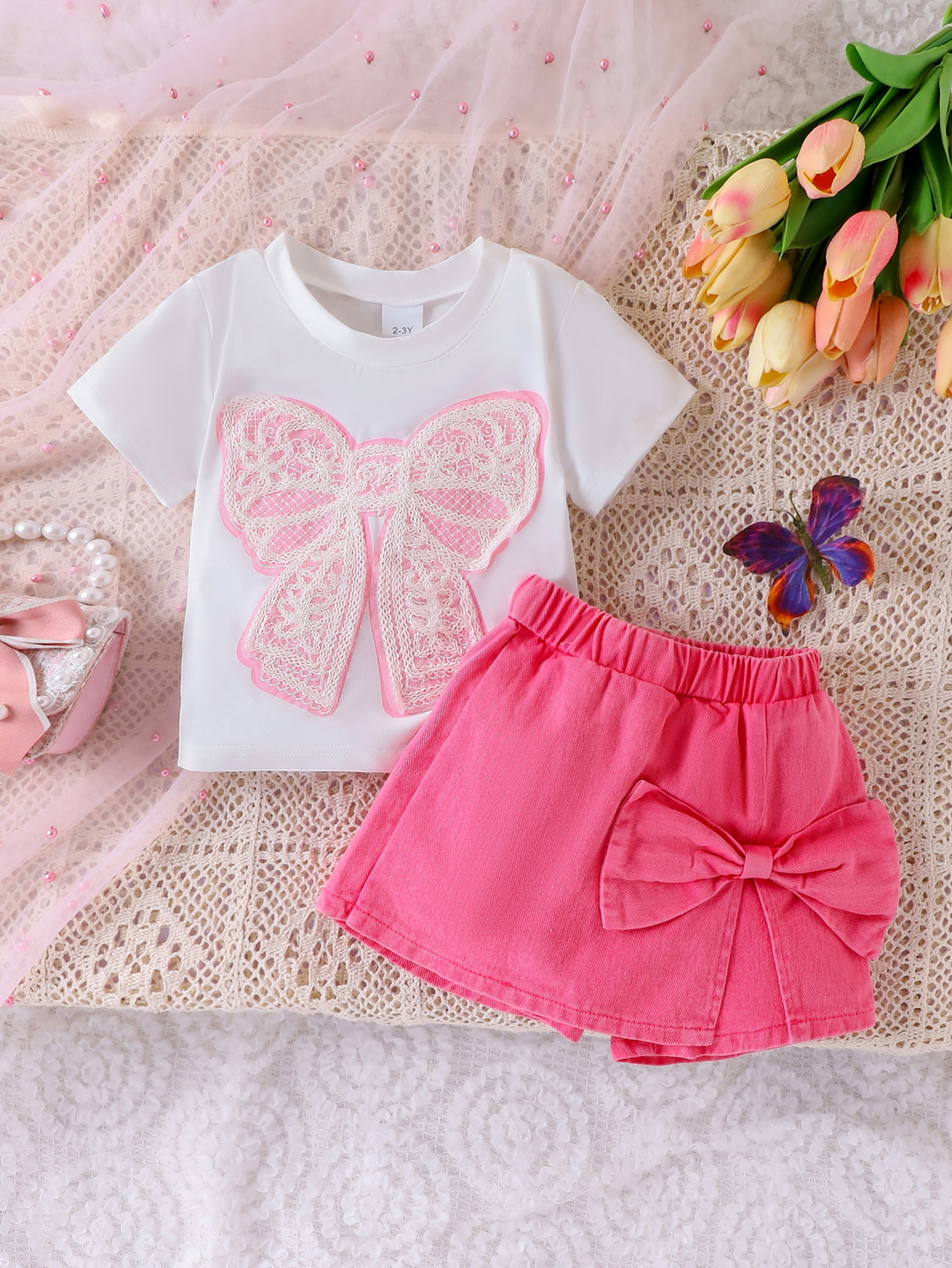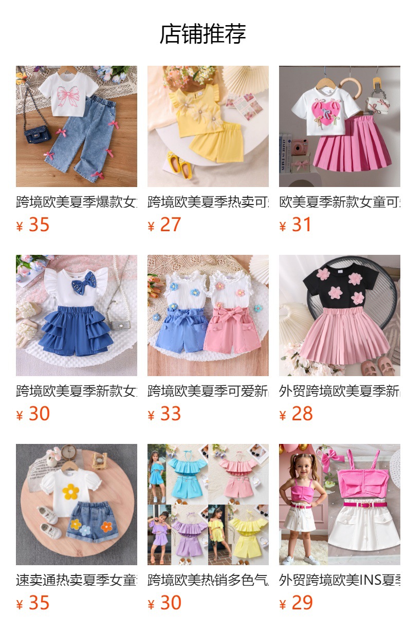 국경 간 유럽과 미국 여름 핫 트렌드 귀여운 소녀 세트 어린이 활 패치 반팔 티셔츠 스커트스토어 가기