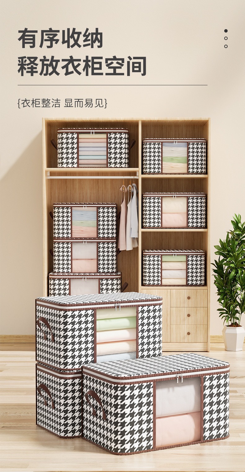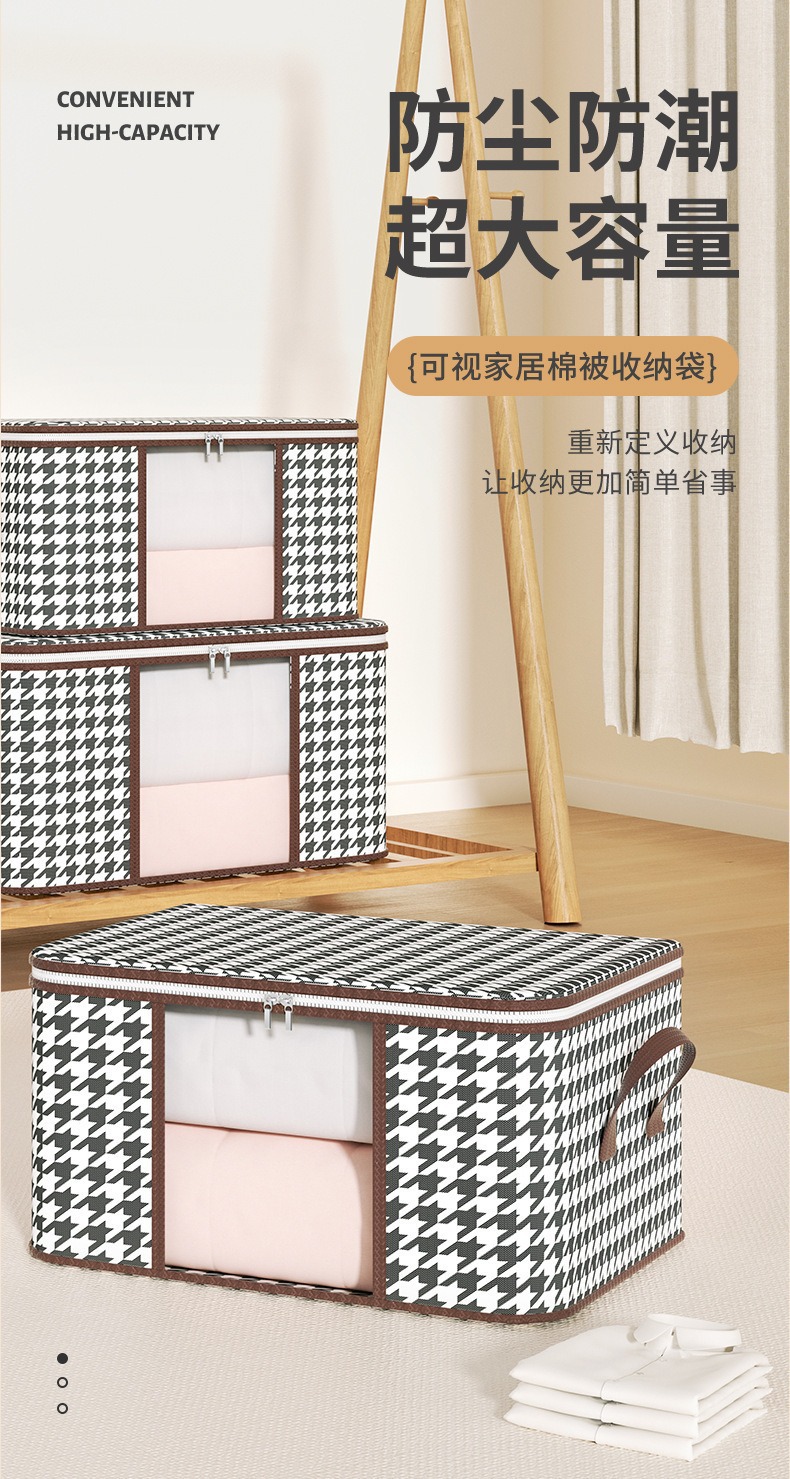 Houndstooth 비주얼 스토리지 백 대용량 가정용 방진 퀼트 백 접이식 이동 옷장 마감 보관 상자스토어 가기