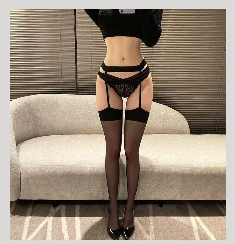 큰 스케일의 서스펜더가 달린 얇은 원피스 스타킹, 순수한 빨간색과 대비되는 빨간색 테두리가 있는 긴 튜브형 섹시 스타킹