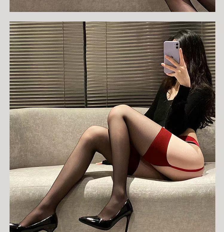 큰 스케일의 서스펜더가 달린 얇은 원피스 스타킹, 순수한 빨간색과 대비되는 빨간색 테두리가 있는 긴 튜브형 섹시 스타킹스토어 가기