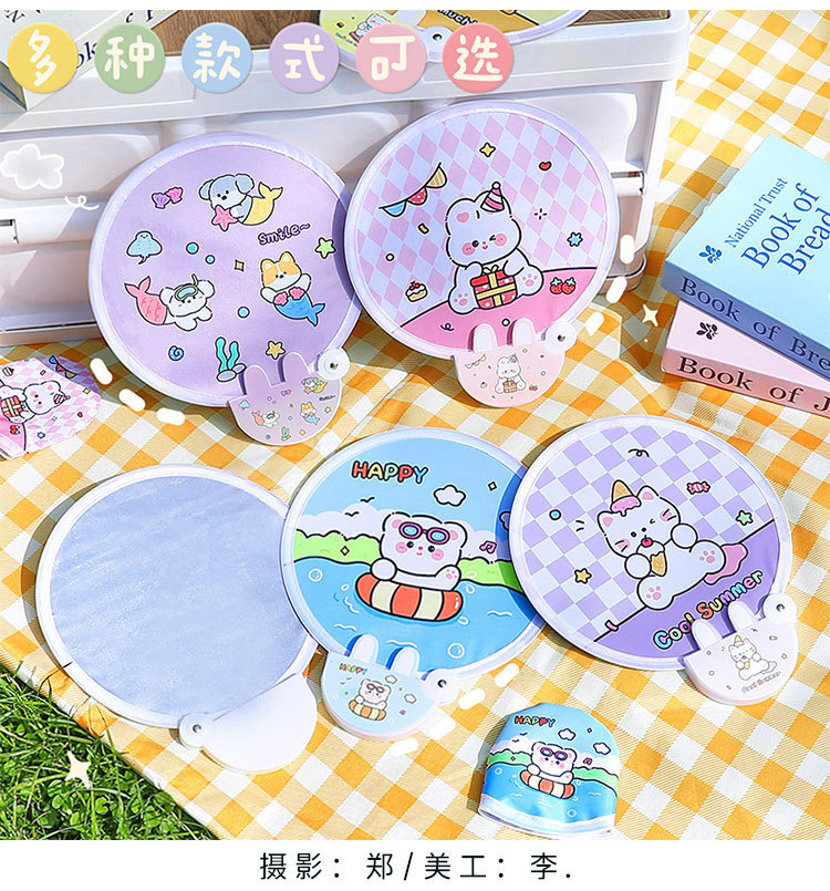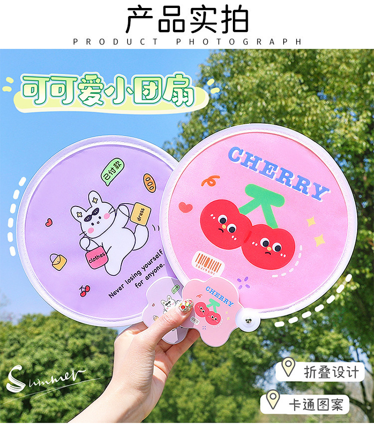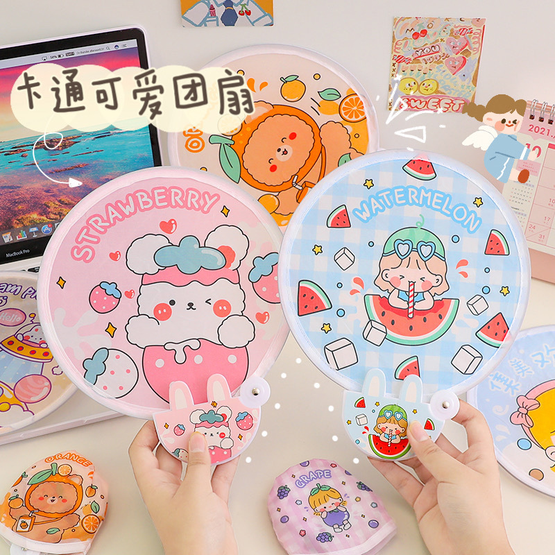 ∝귀여운 원형 부채 일본식 접이식 원형 부채 여름 휴대용 미니 원형 부채 천으로 덮인 작은 부채 인터넷 연예인 부채스토어 가기