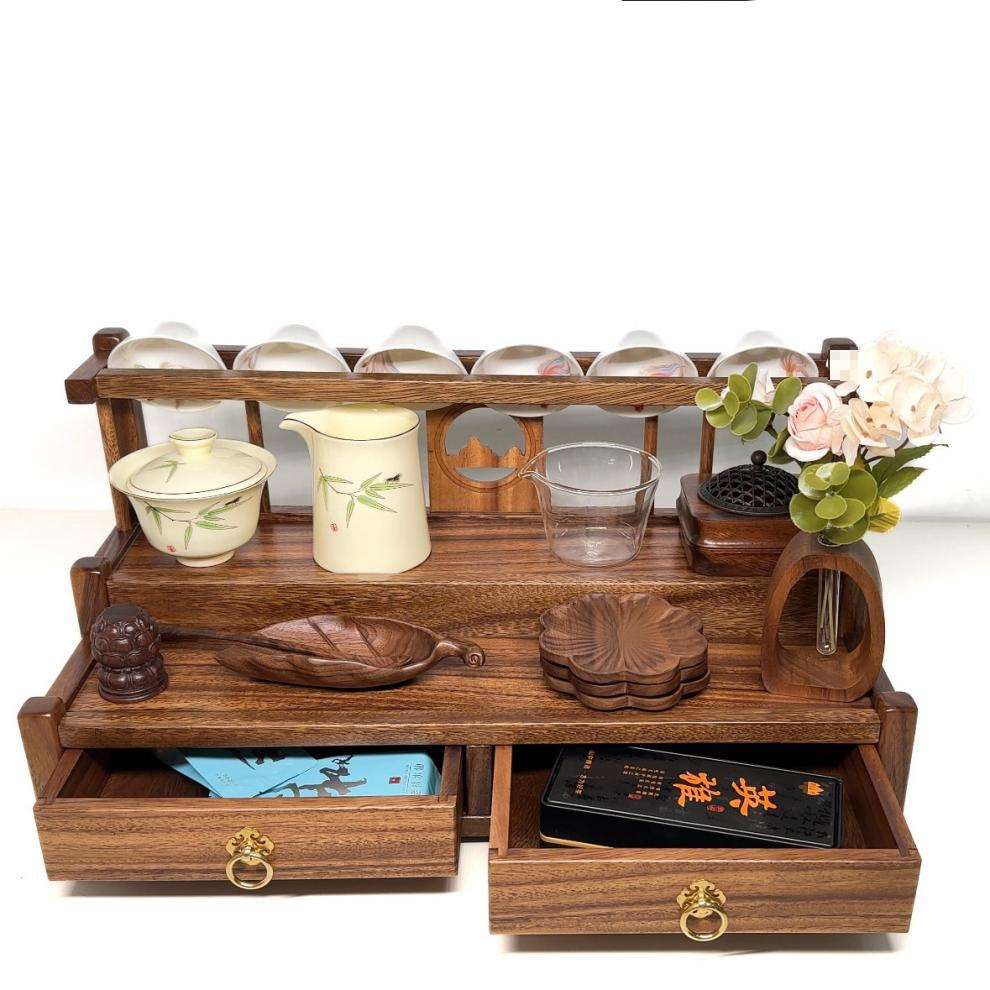 • 작은 보구 랙 중국 스타일 단단한 나무 보관 주전자 차 세트 보라색 점토 냄비 테이블 차 컵 데스크탑 보관 랙