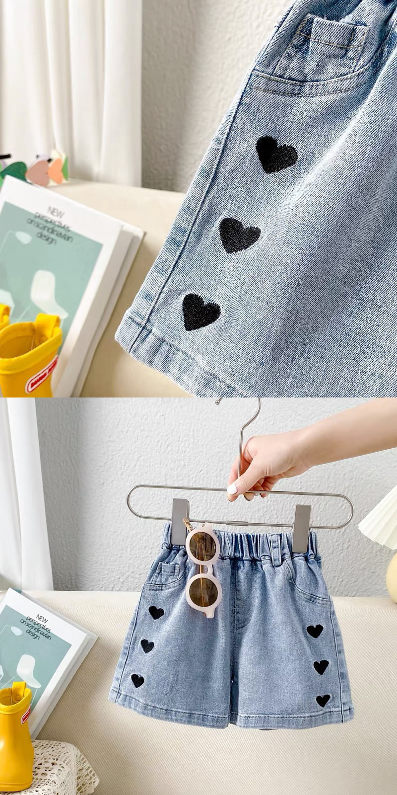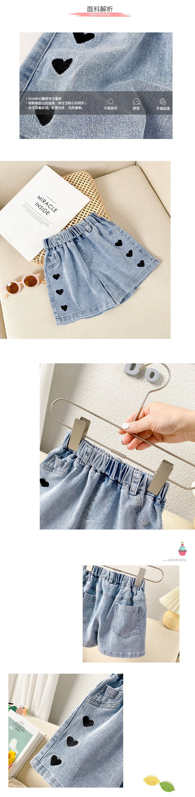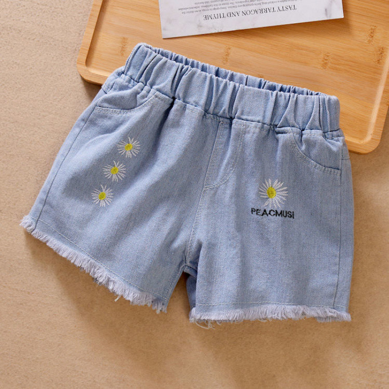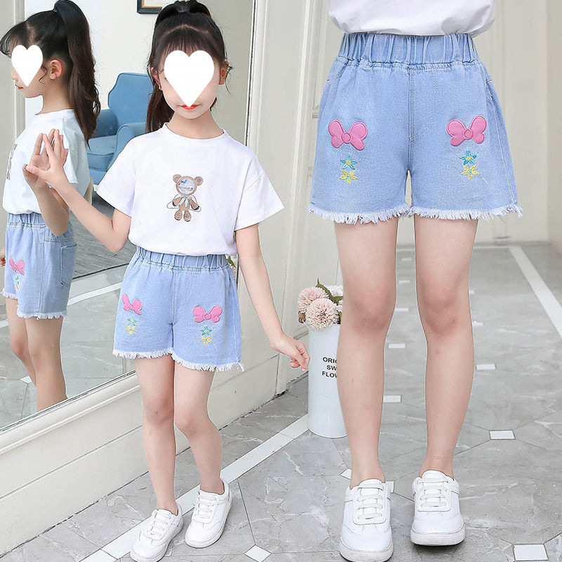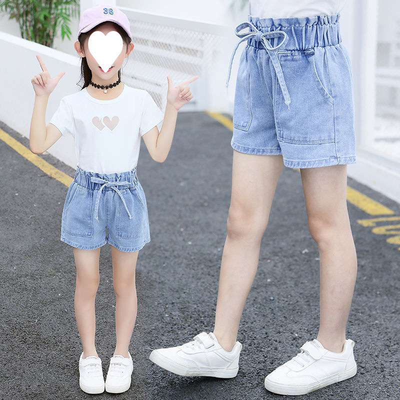소녀 데님 반바지 2024 년 여름 새로운 어린이 느슨한 아기 외부 착용 큰 어린이 얇은 소녀 짧은 바지스토어 가기