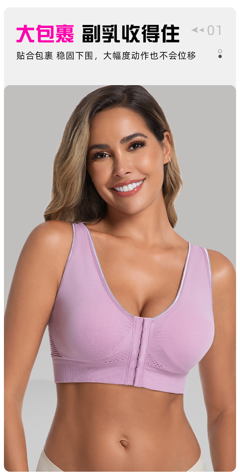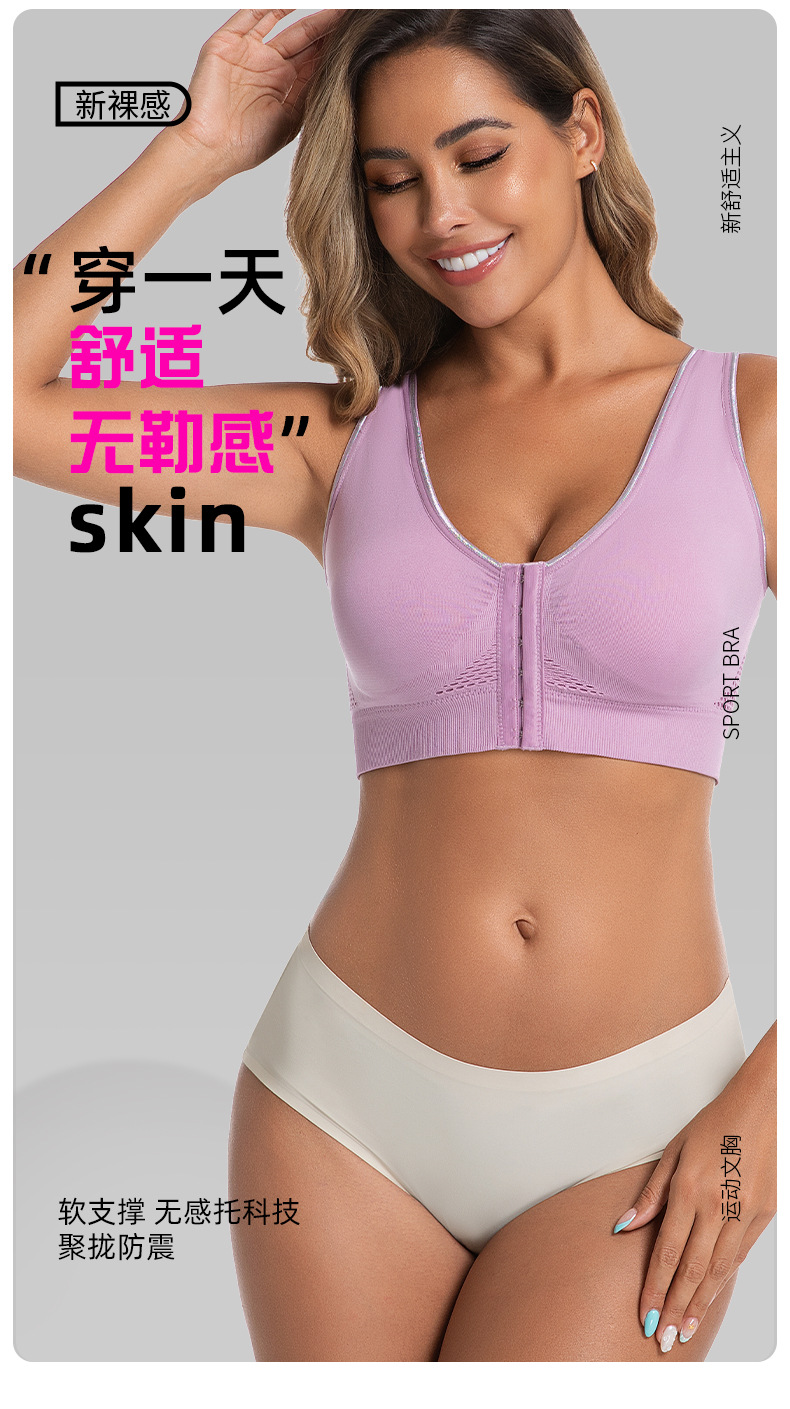 국경 간 핫 세일 중공 메쉬 통기성 속옷 여성 플러스 사이즈 반지가 없음 프론트 브레스트 브라 얇은 스포츠 요가