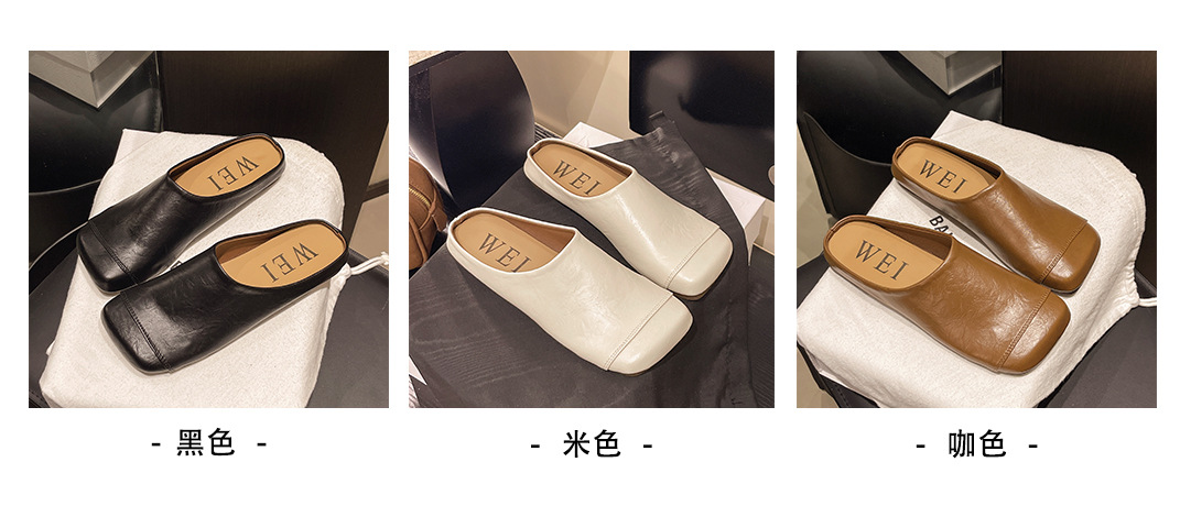 2025 여름 새 샌들과 슬리퍼 심플 스퀘어 헤드 한국식 올매치 소프트 바오터우 하프 슬리퍼 캐주얼 게으른 신발스토어 가기
