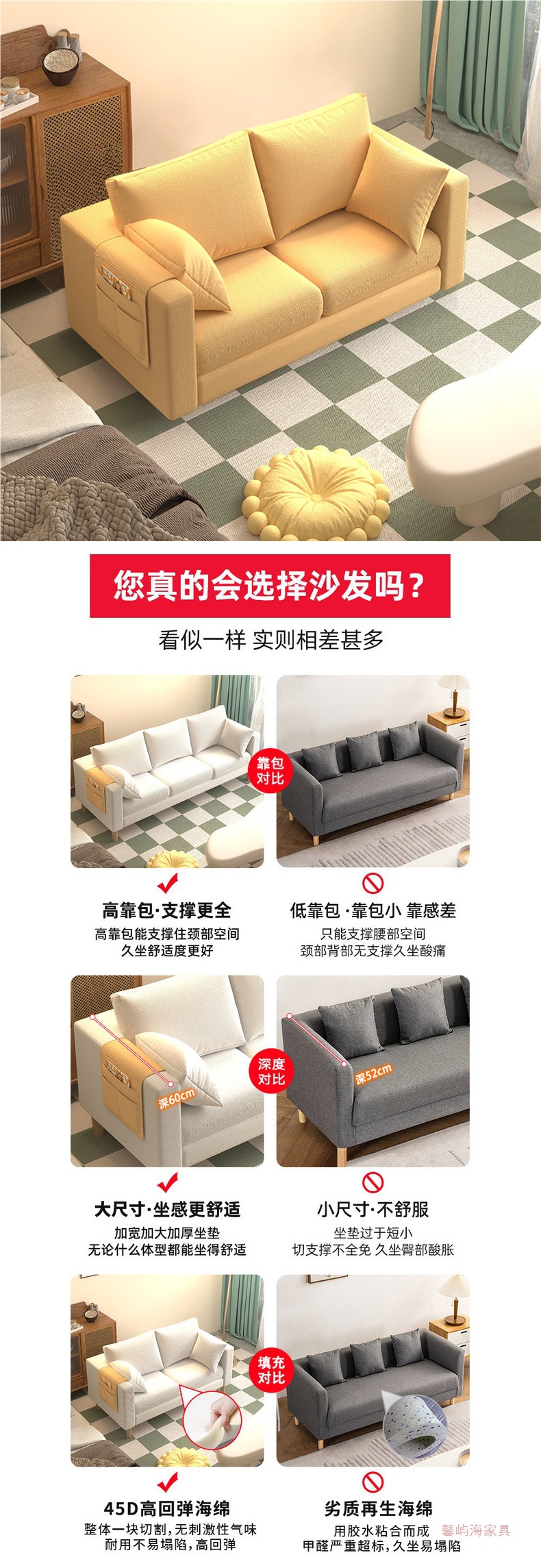 소파 작은 아파트 노르딕 간단한 현대 침실 임대 방 간단한 인터넷 인기 더블 3 인 거실 원단 소파스토어 가기