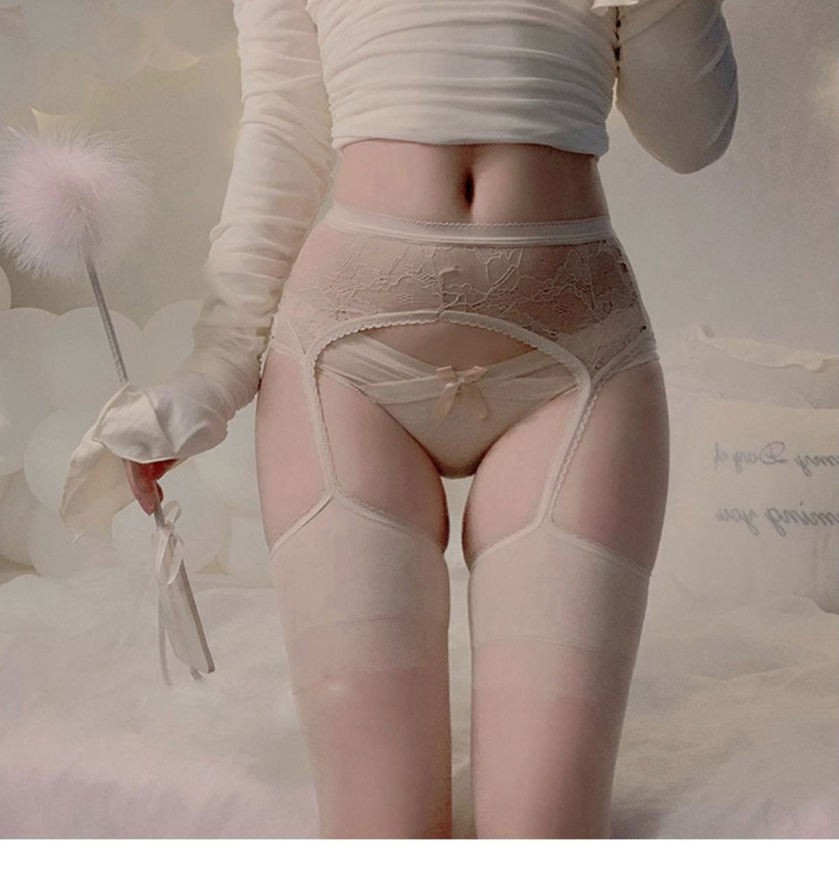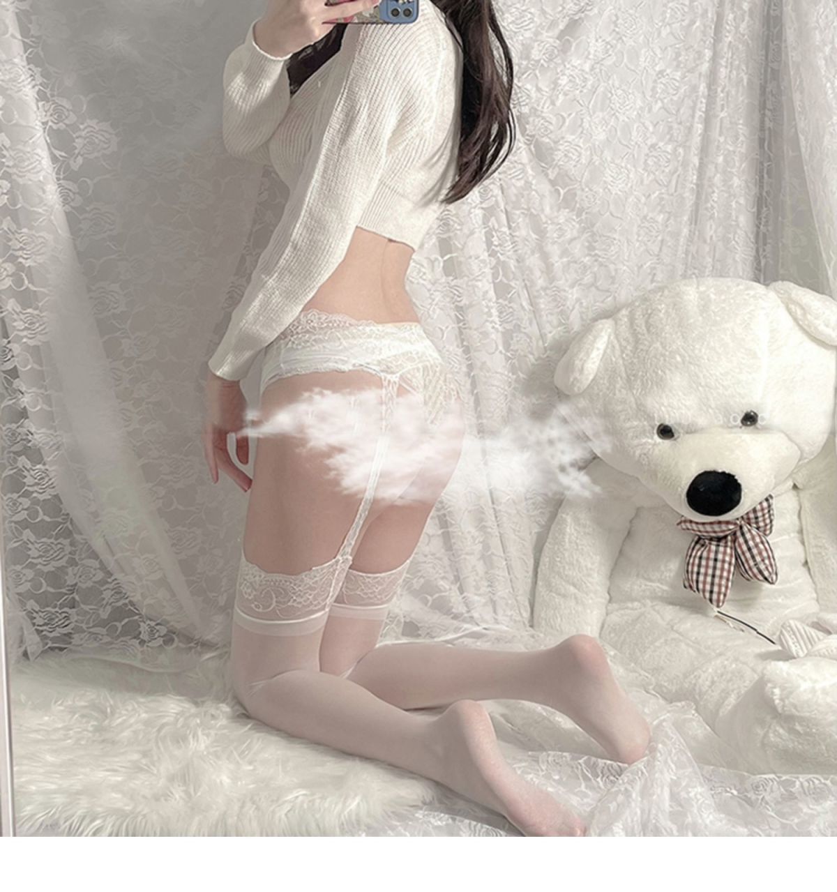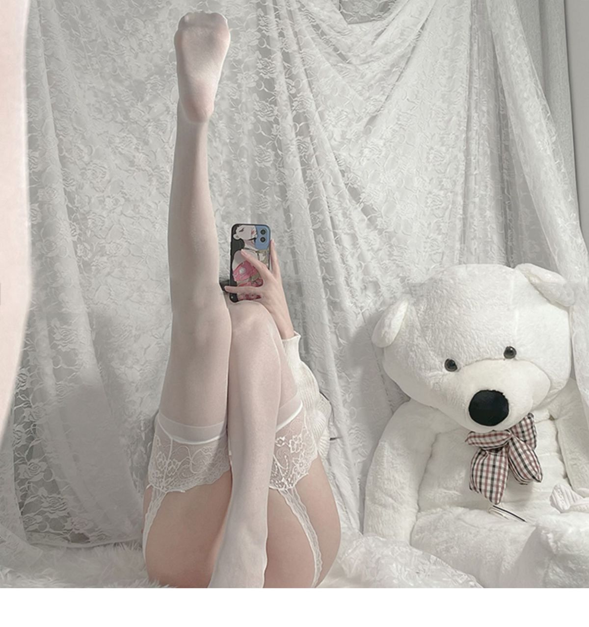 • 흰색 실크 레이스 원피스 가터 스타킹
